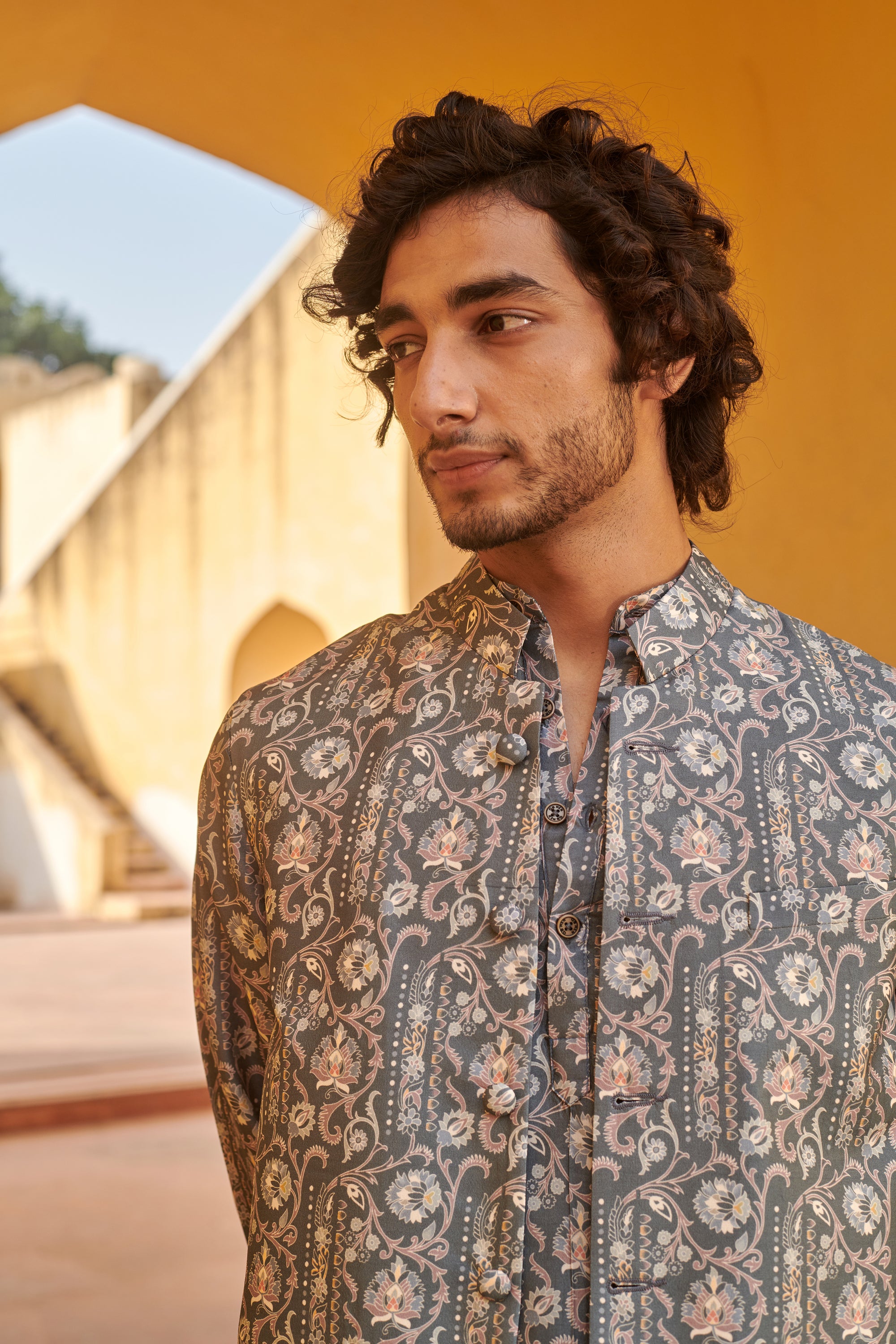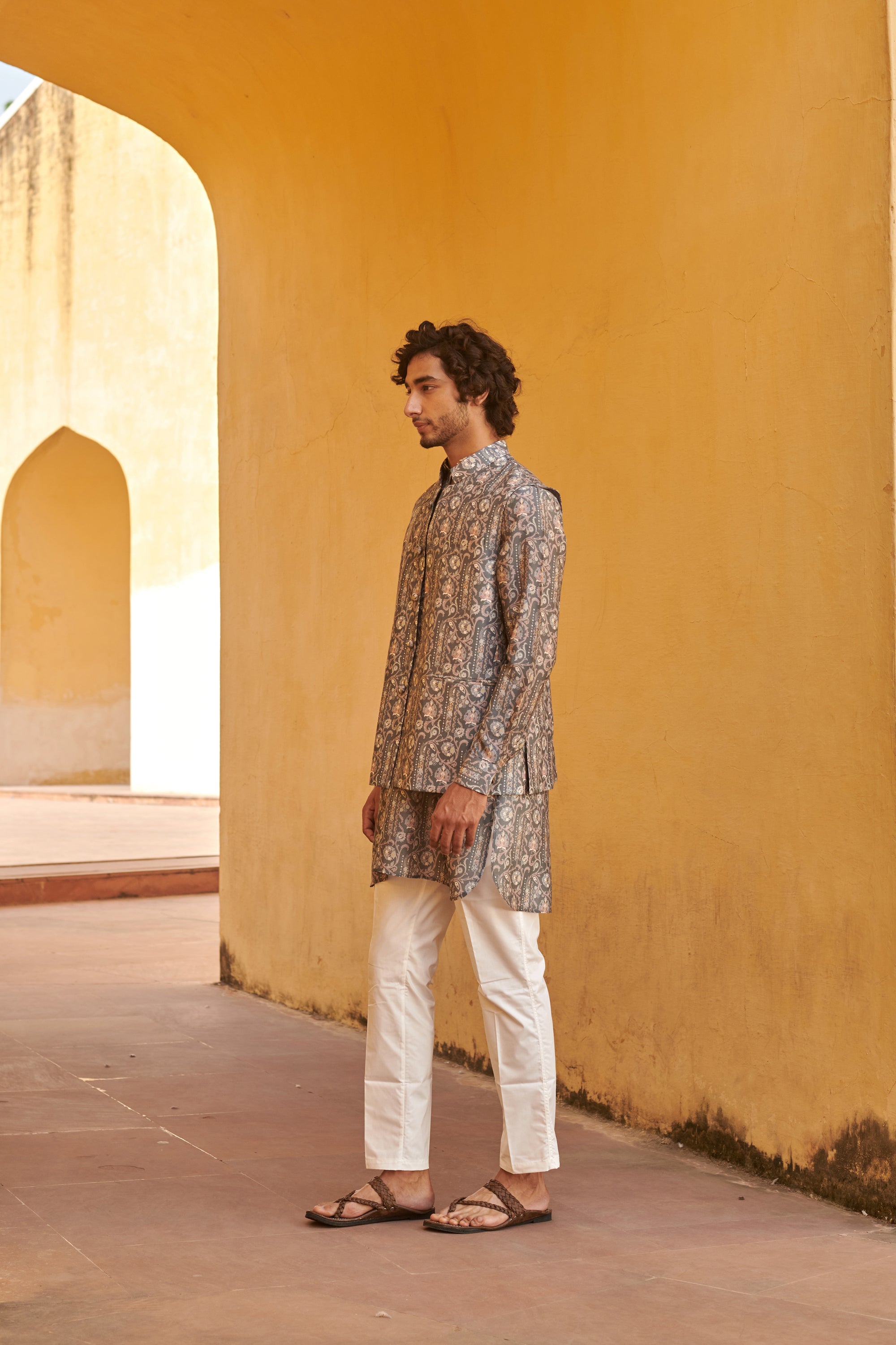 Jual Elephant Blue - Russian Silk - Full Button Kurta & Bandi Set