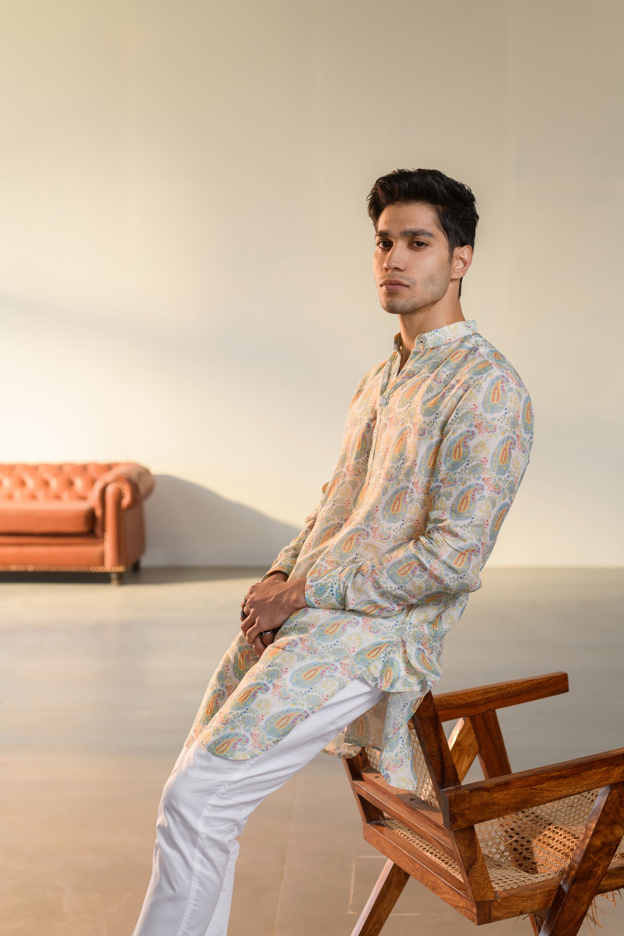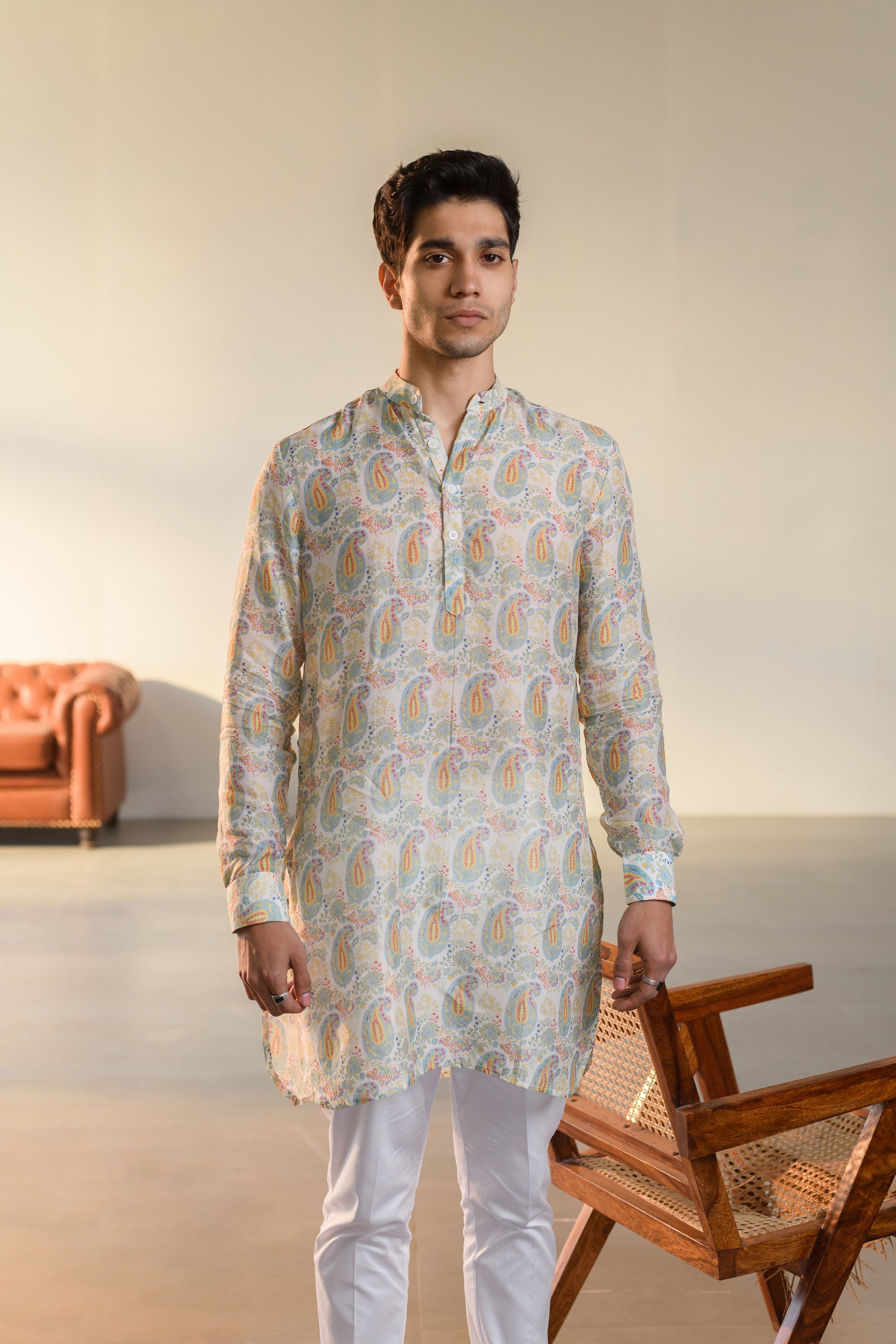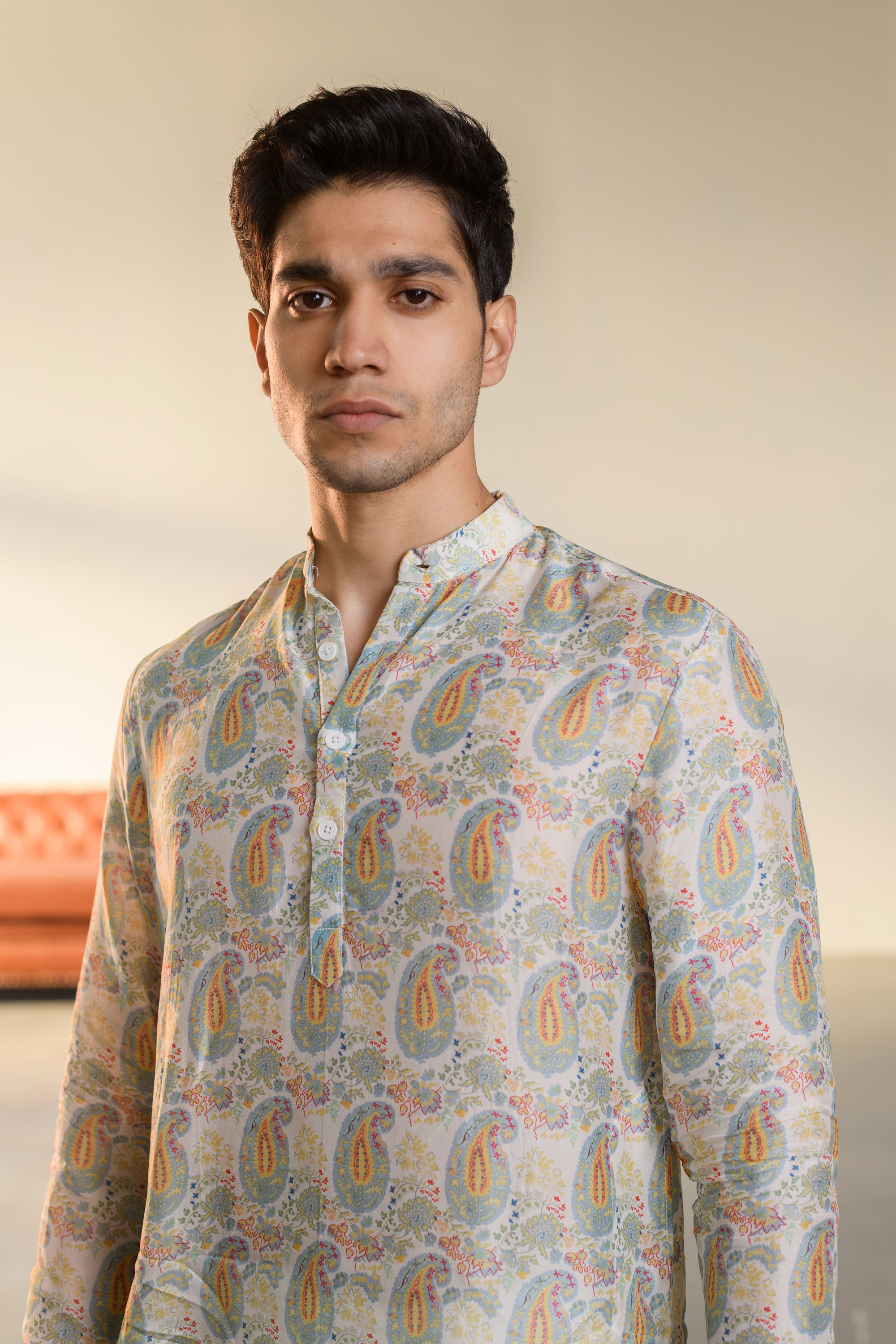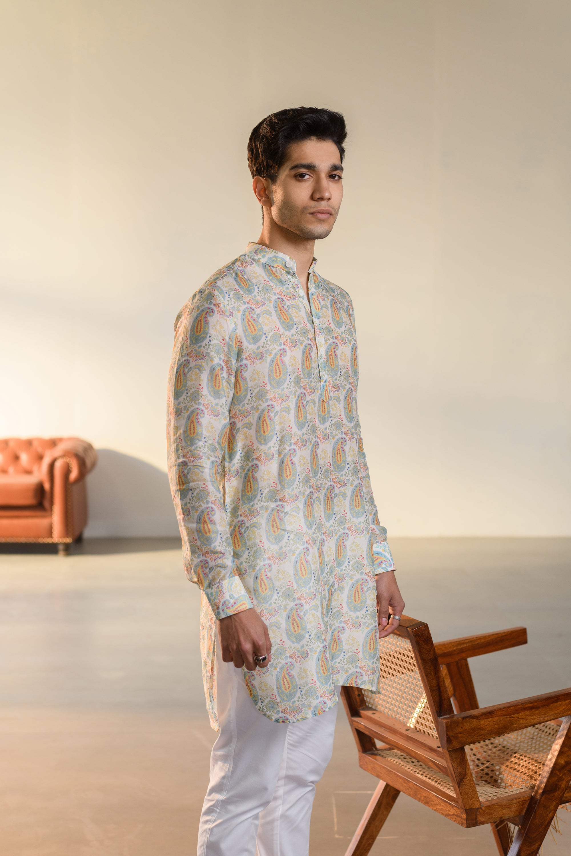 Paisley Cream White - Russian Silk- Ganganagry Kurta For Men