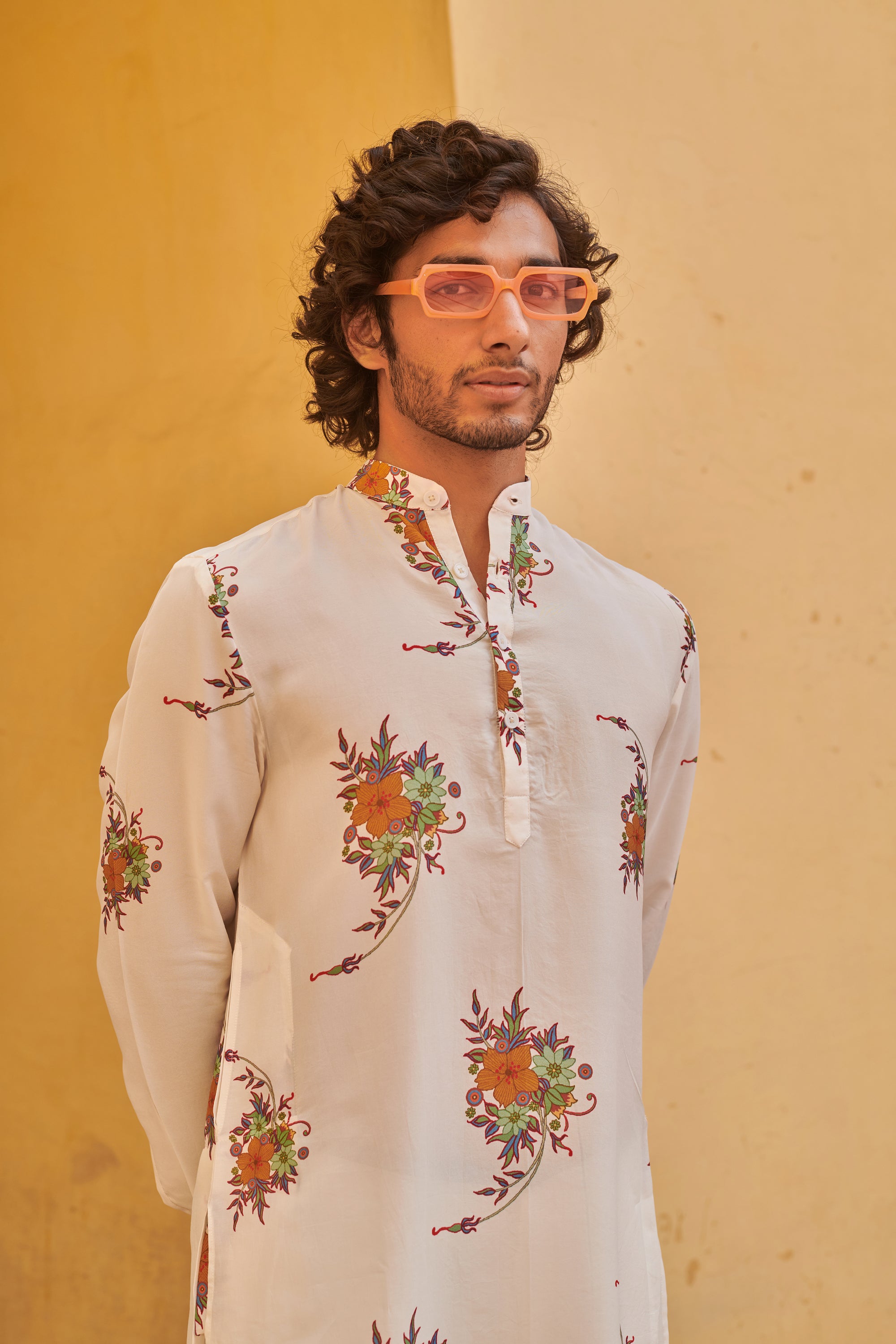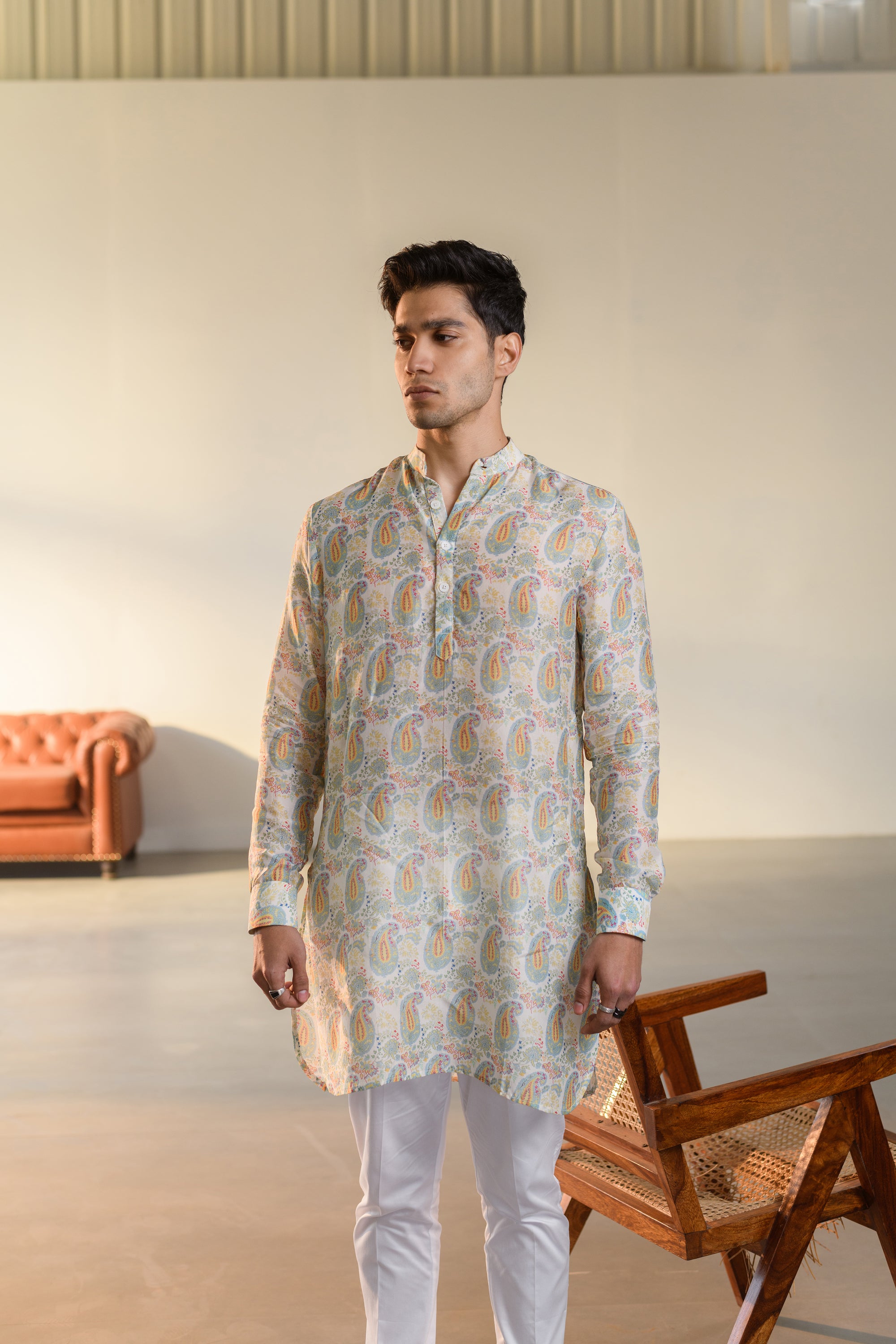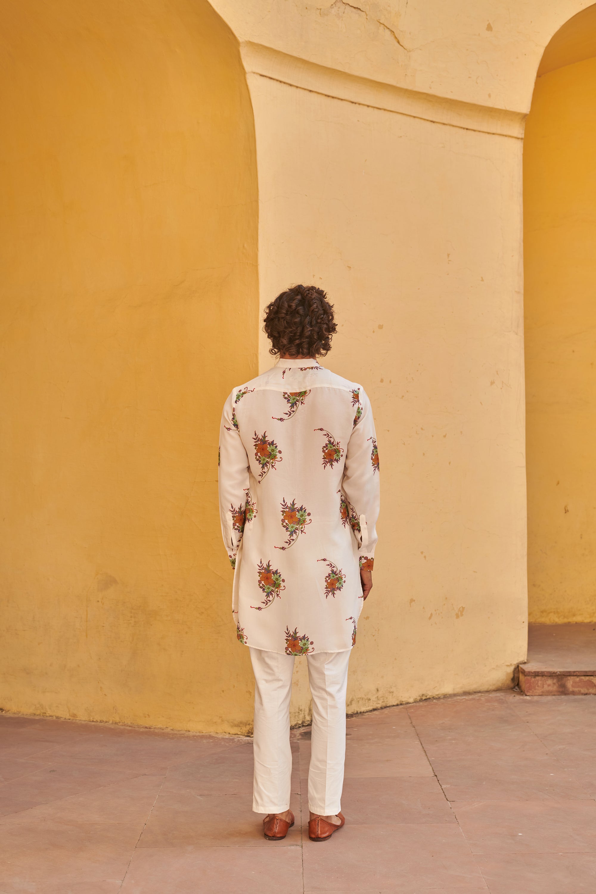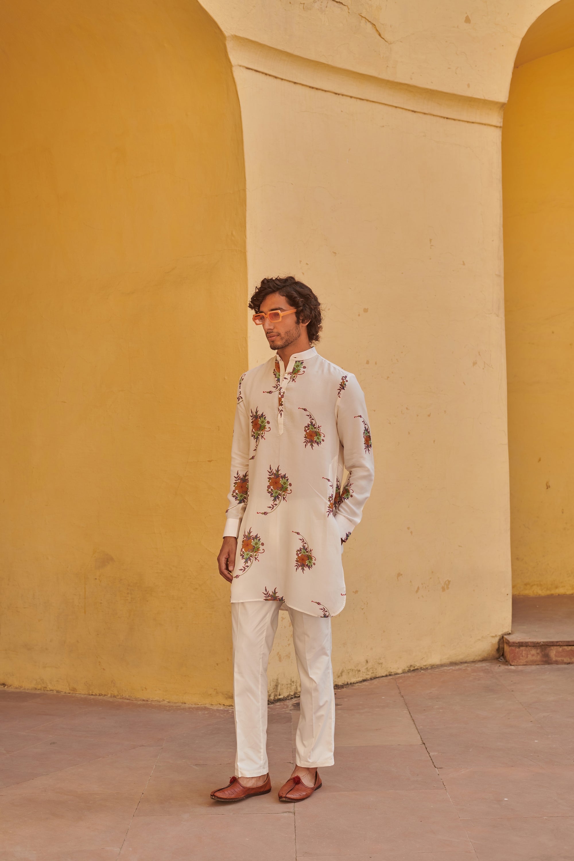 Paisley Cream White - Russian Silk- Ganganagry Kurta For Men