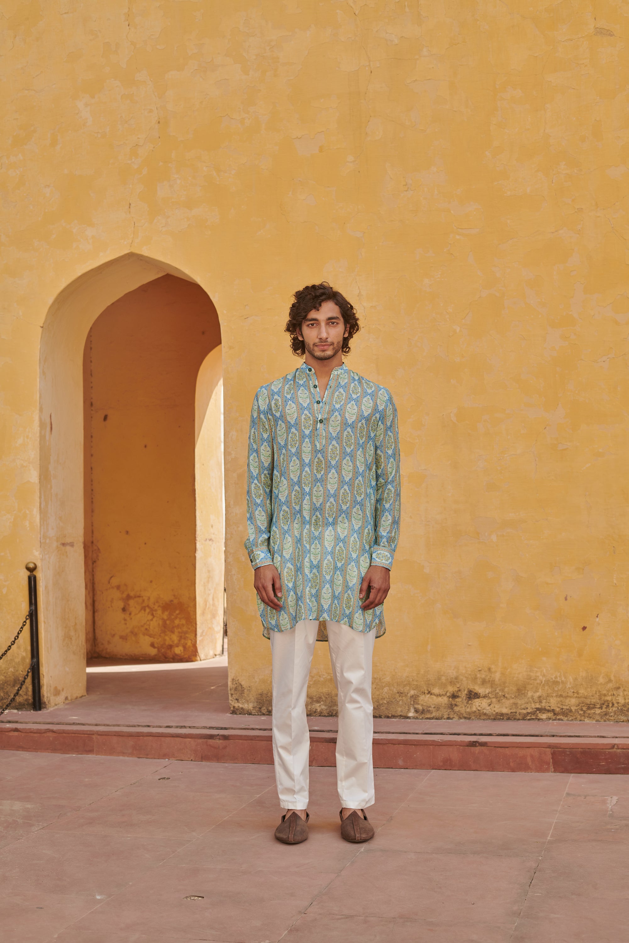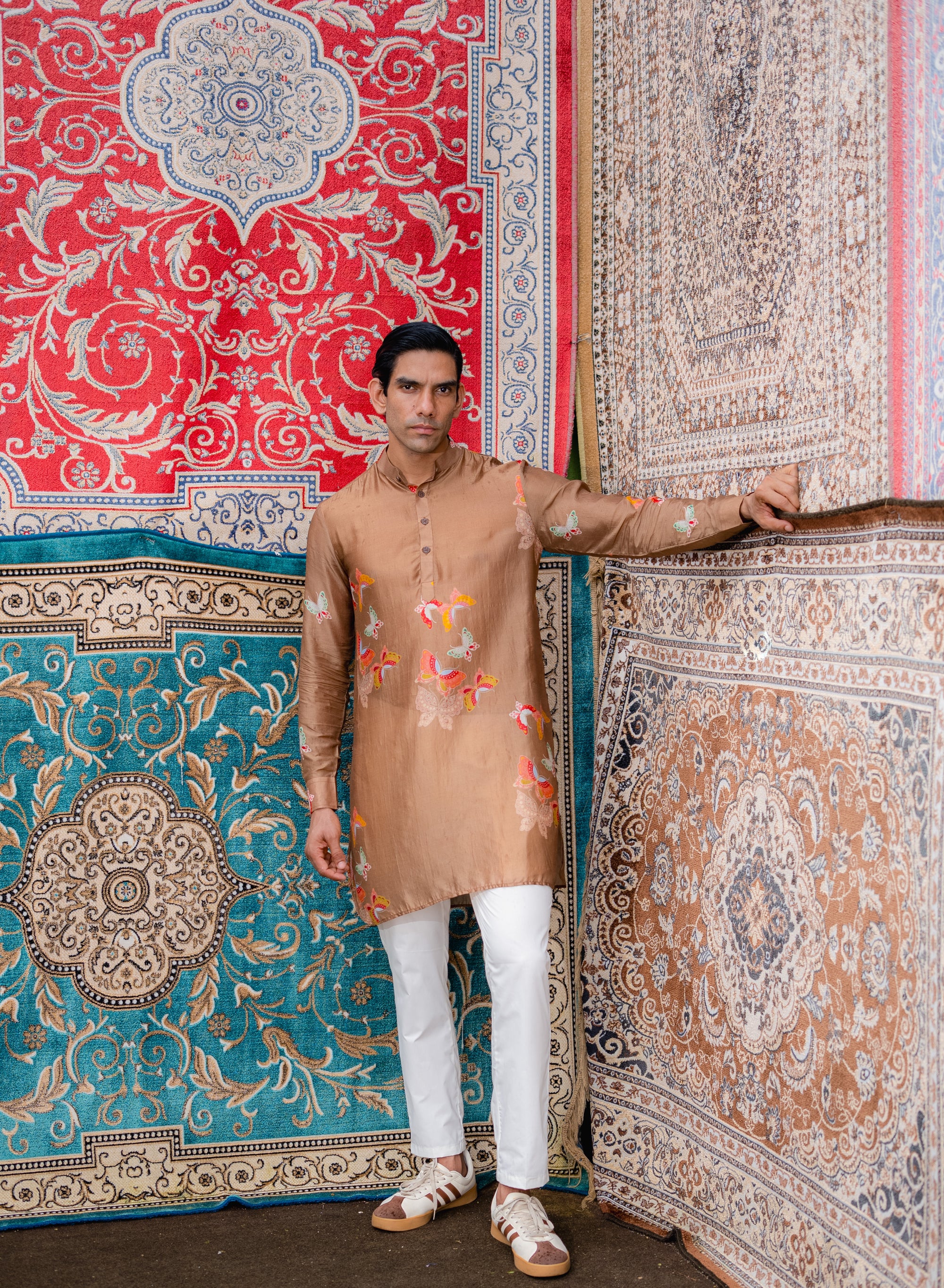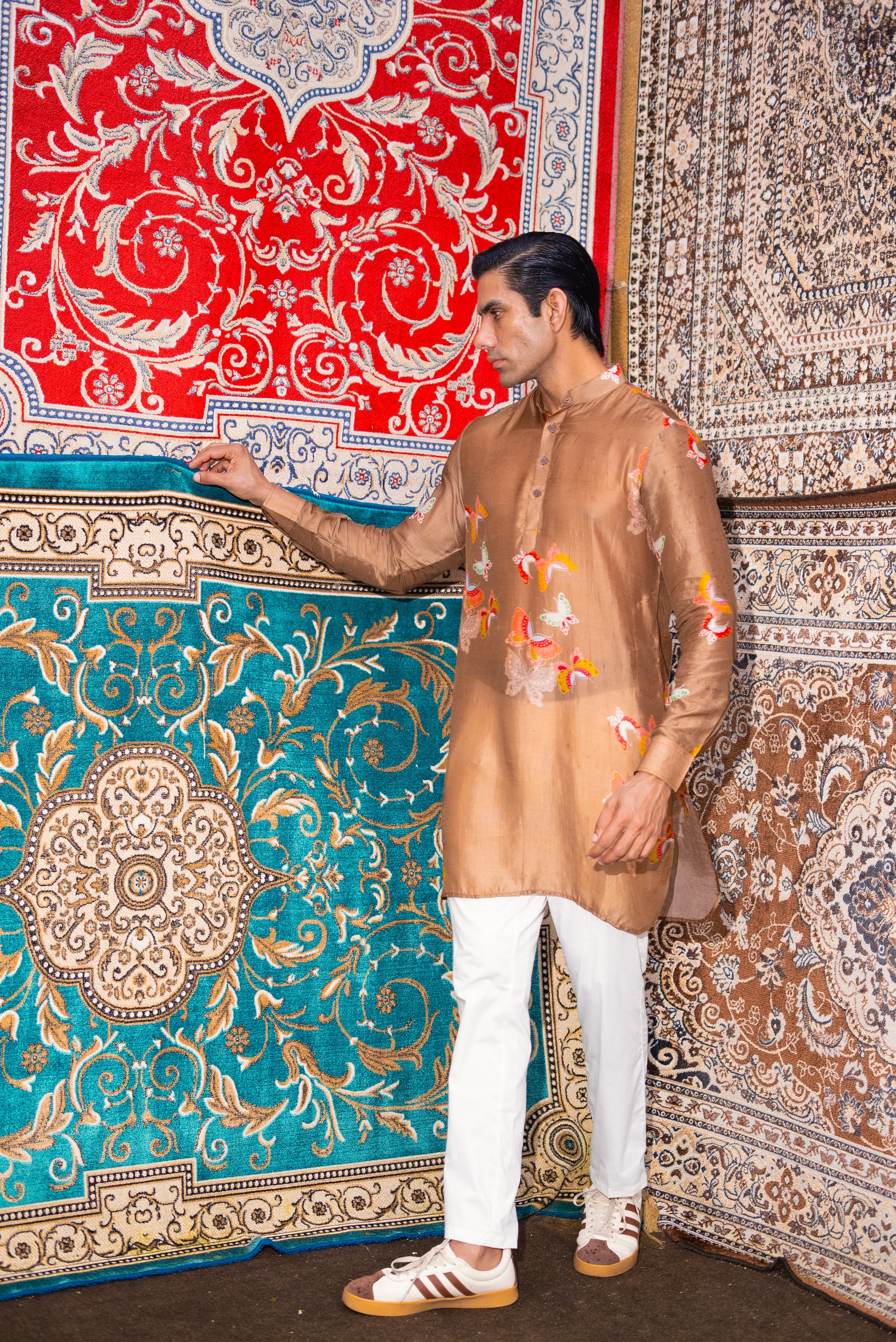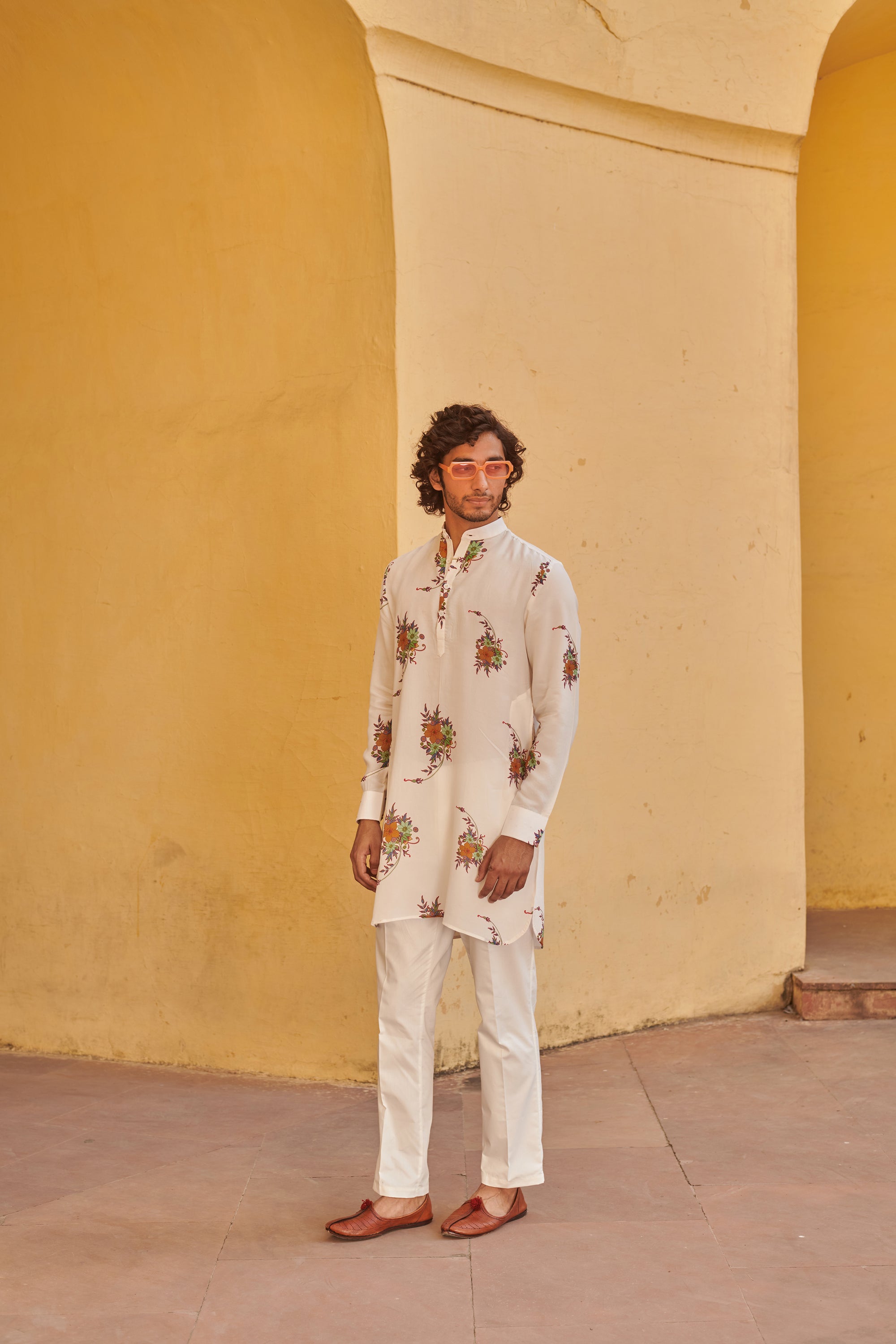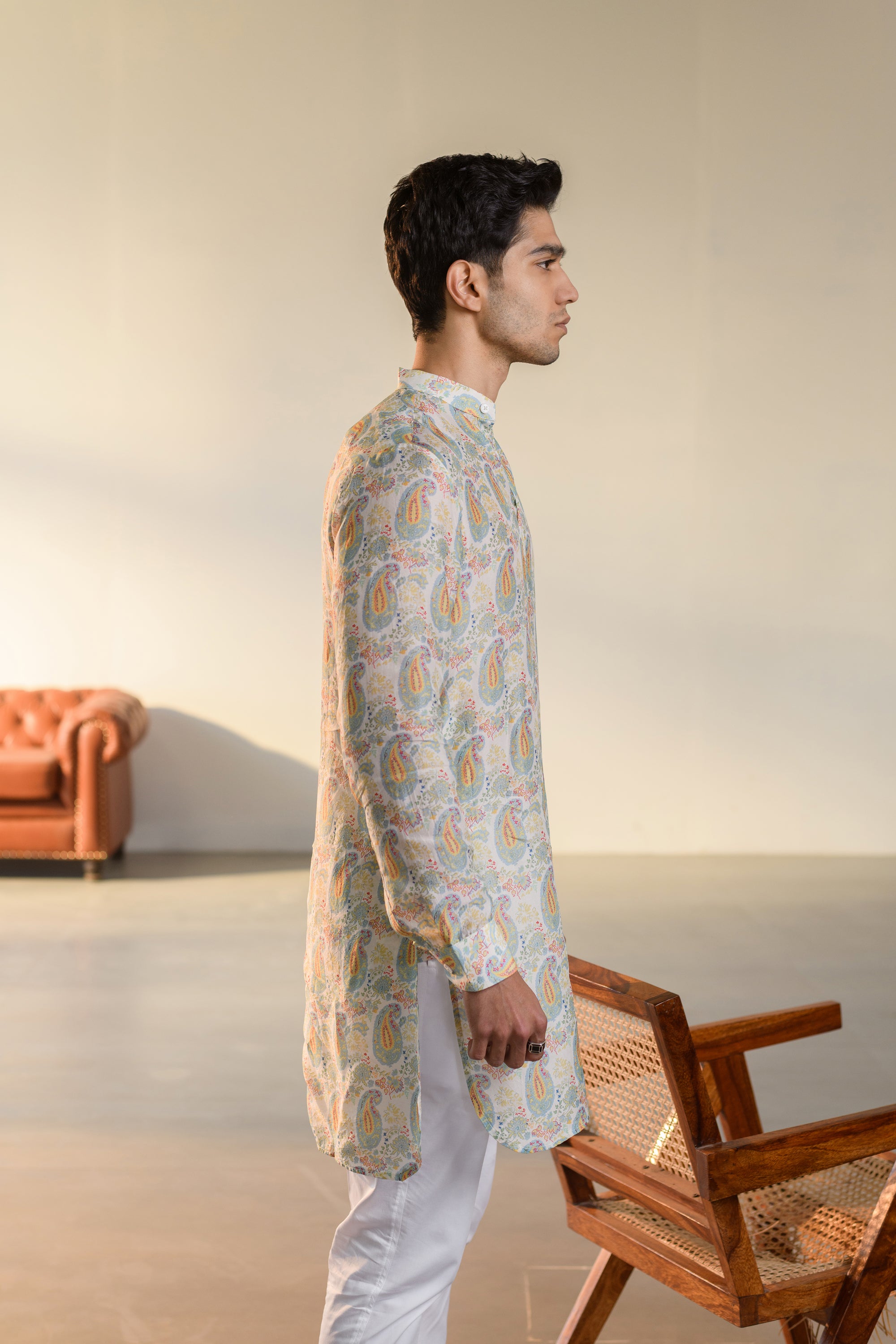 Paisley Cream White - Russian Silk- Ganganagry Kurta For Men