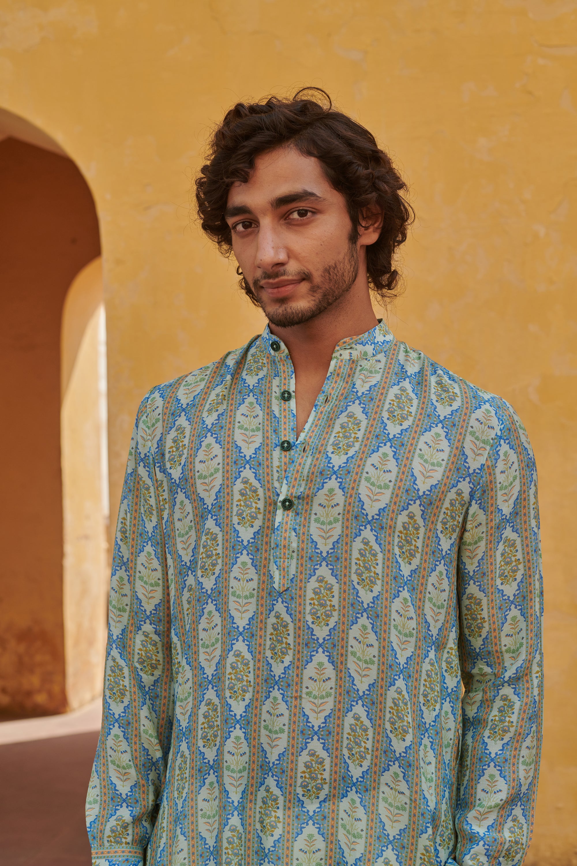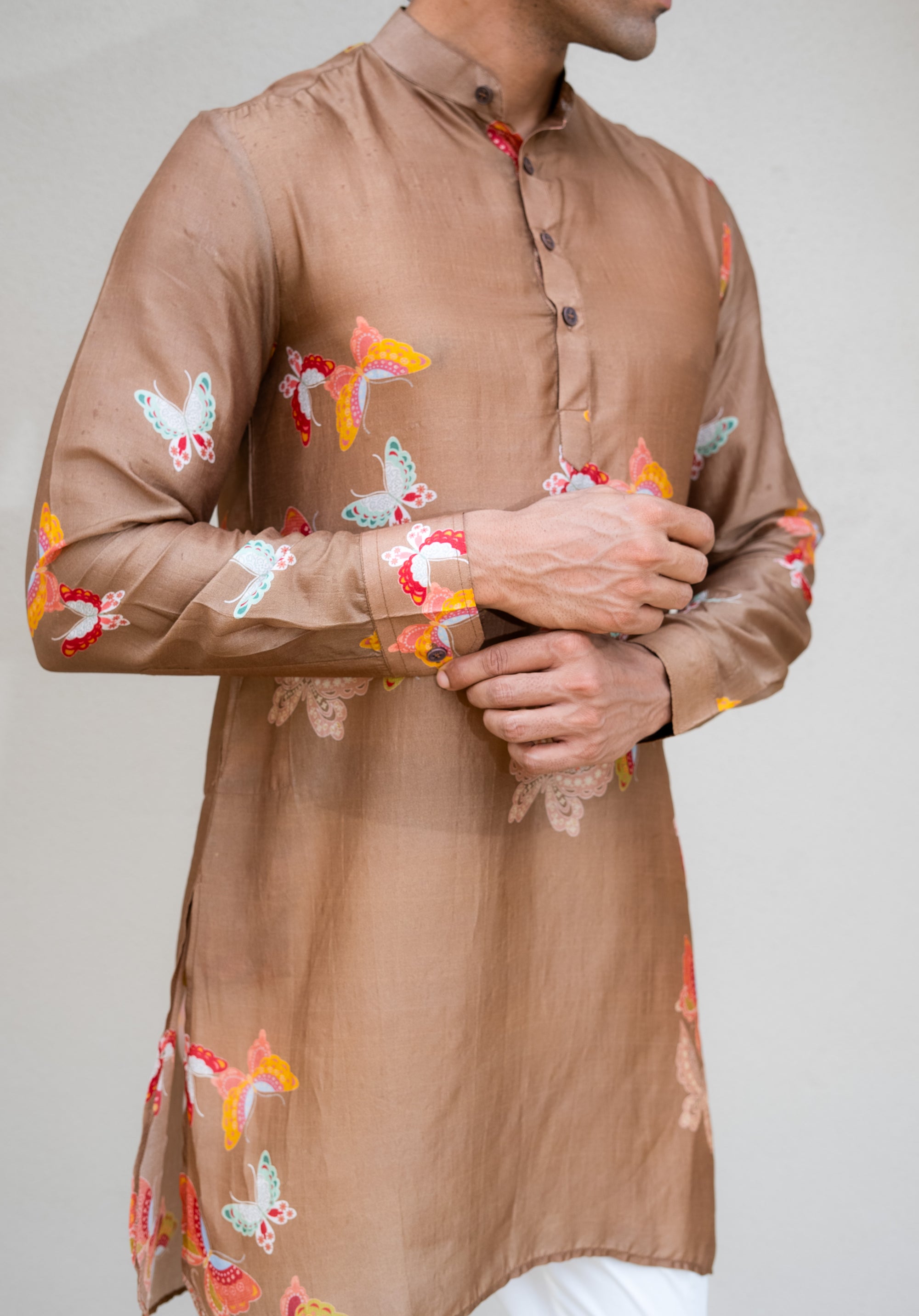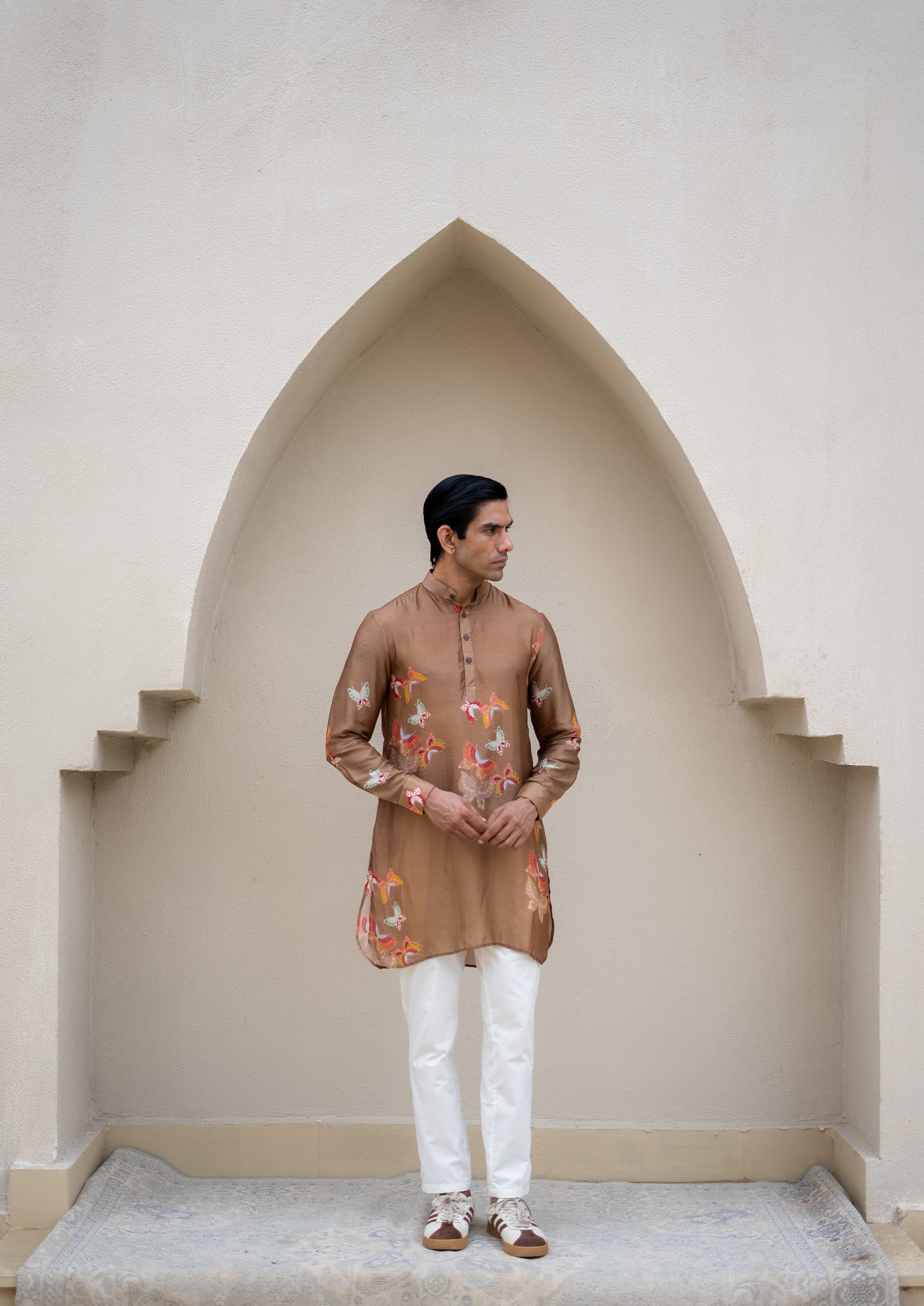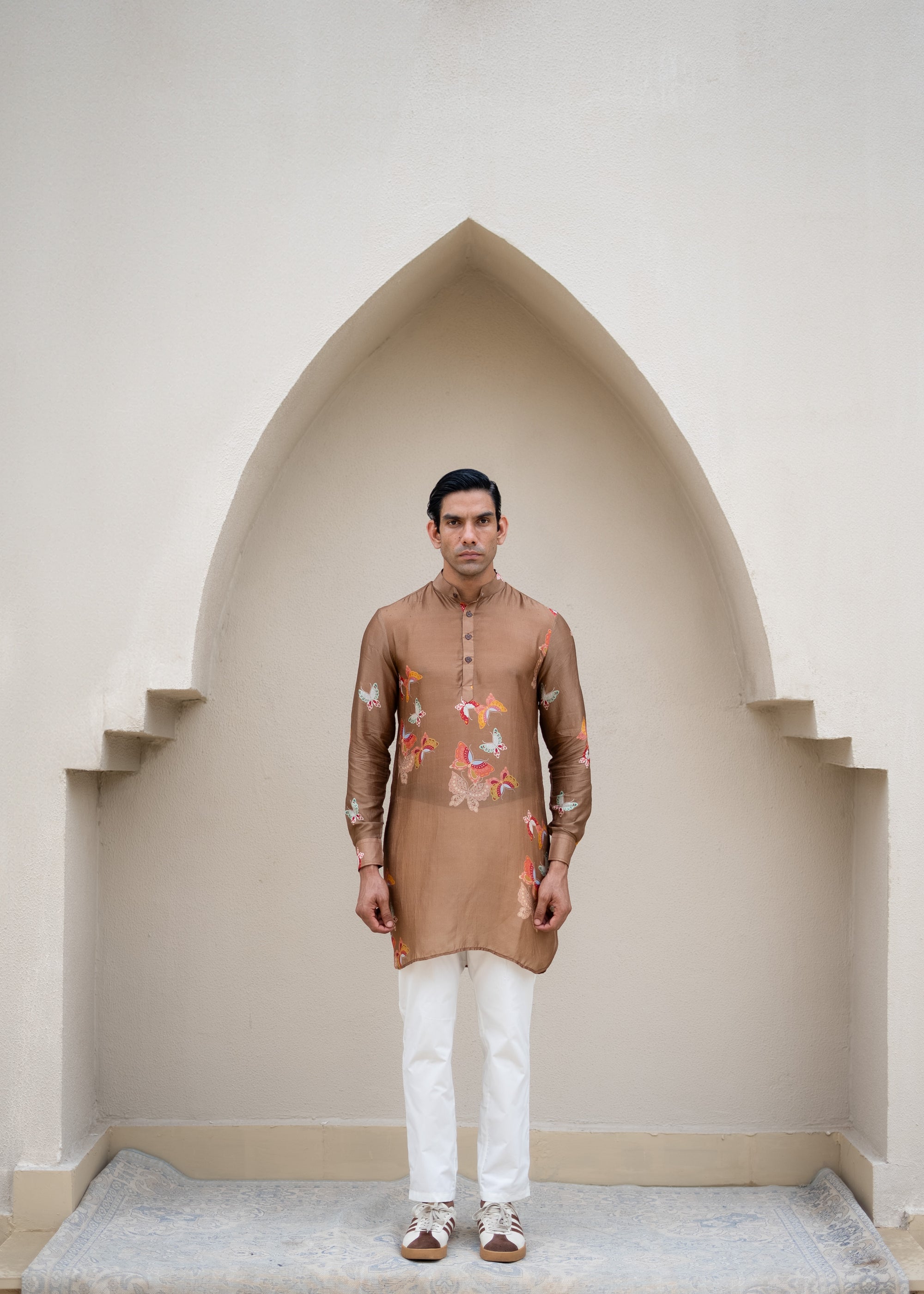 Paisley Cream White - Russian Silk- Ganganagry Kurta For Men