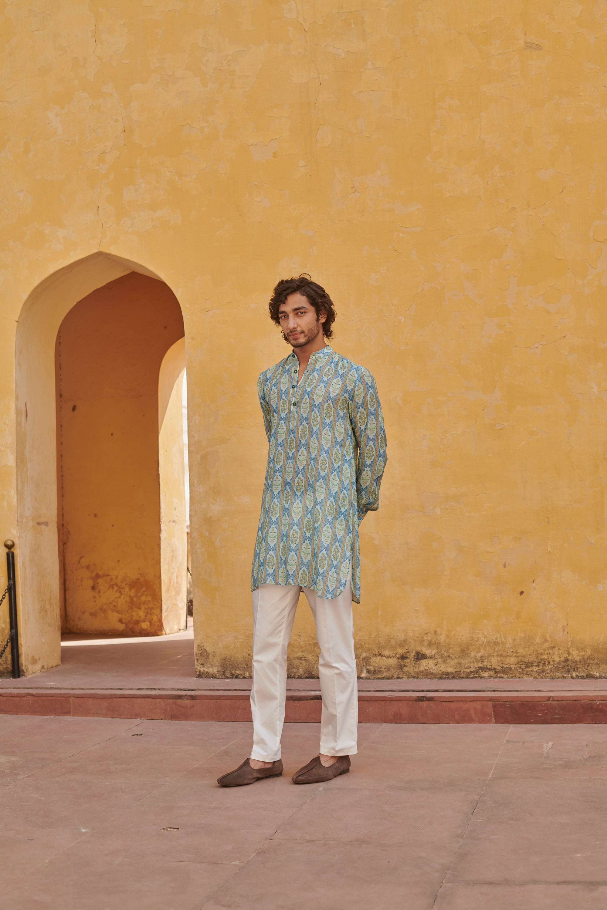 Jual Elephant Blue - Russian Silk - Ganganagry Kurta For Men