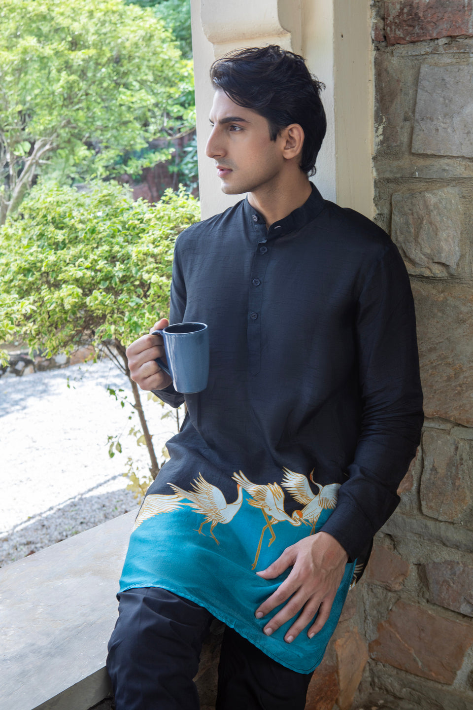 Jual Elephant Blue - Russian Silk - Ganganagry Kurta For Men