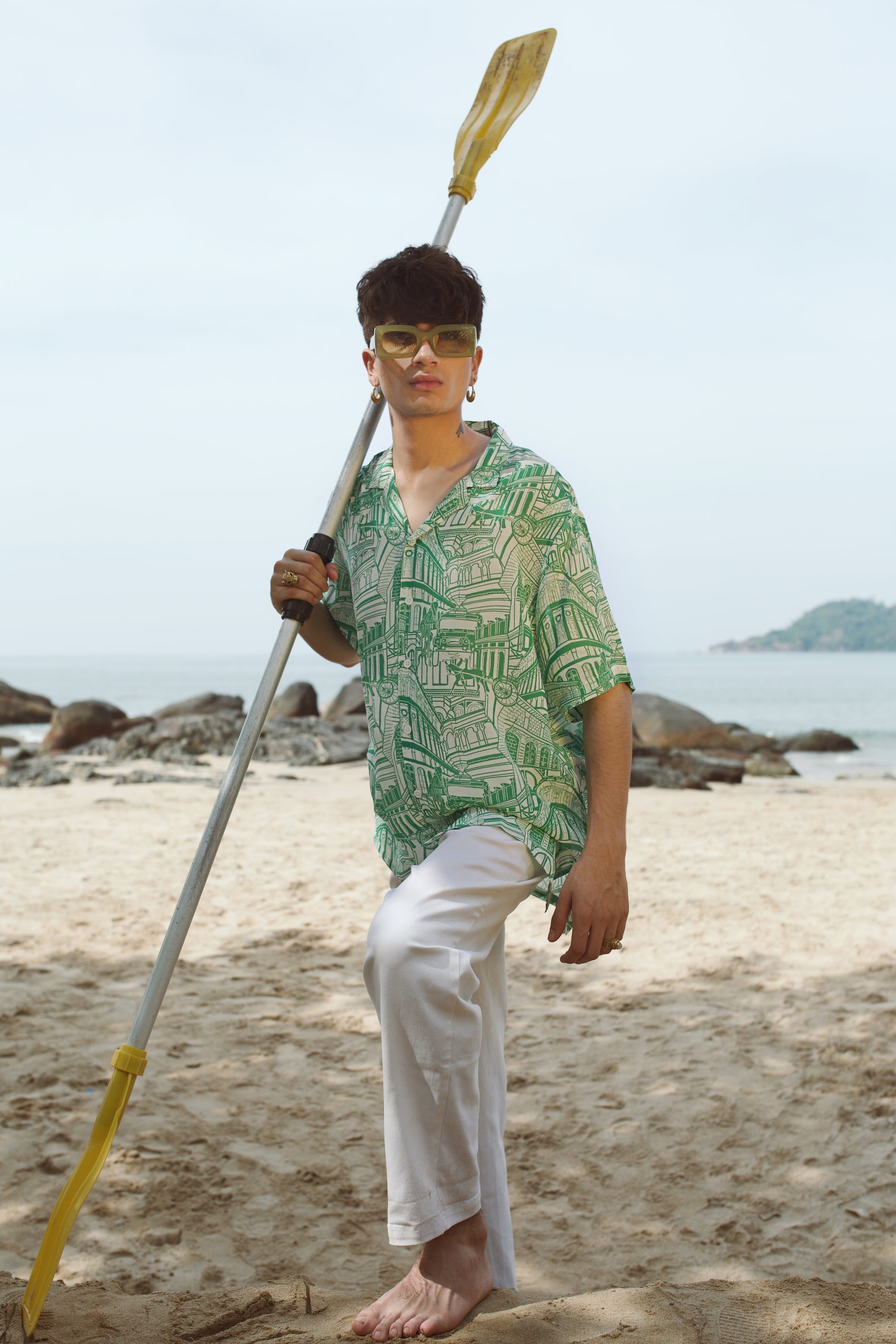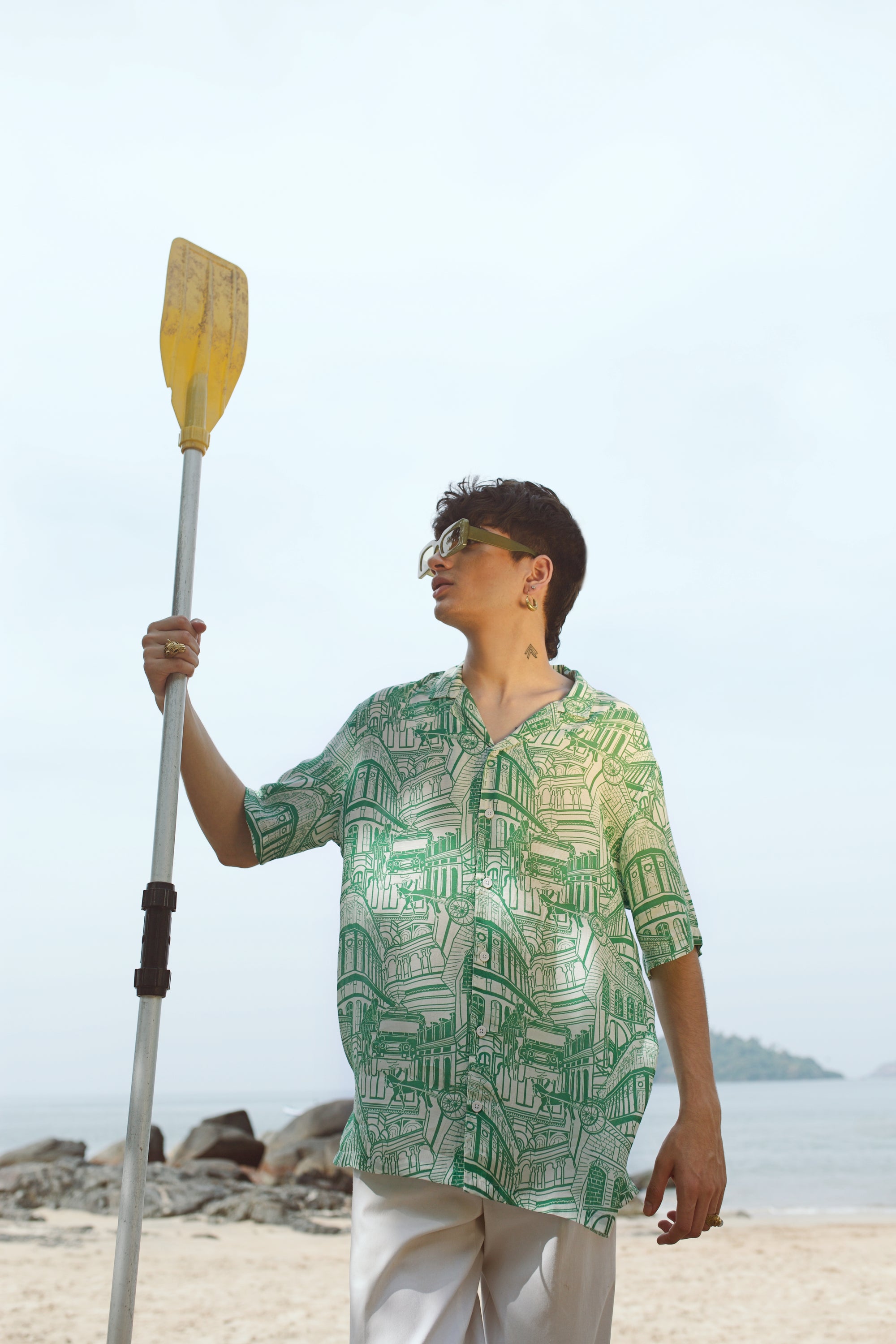 Green Bottle Printed Oversize Shirt
