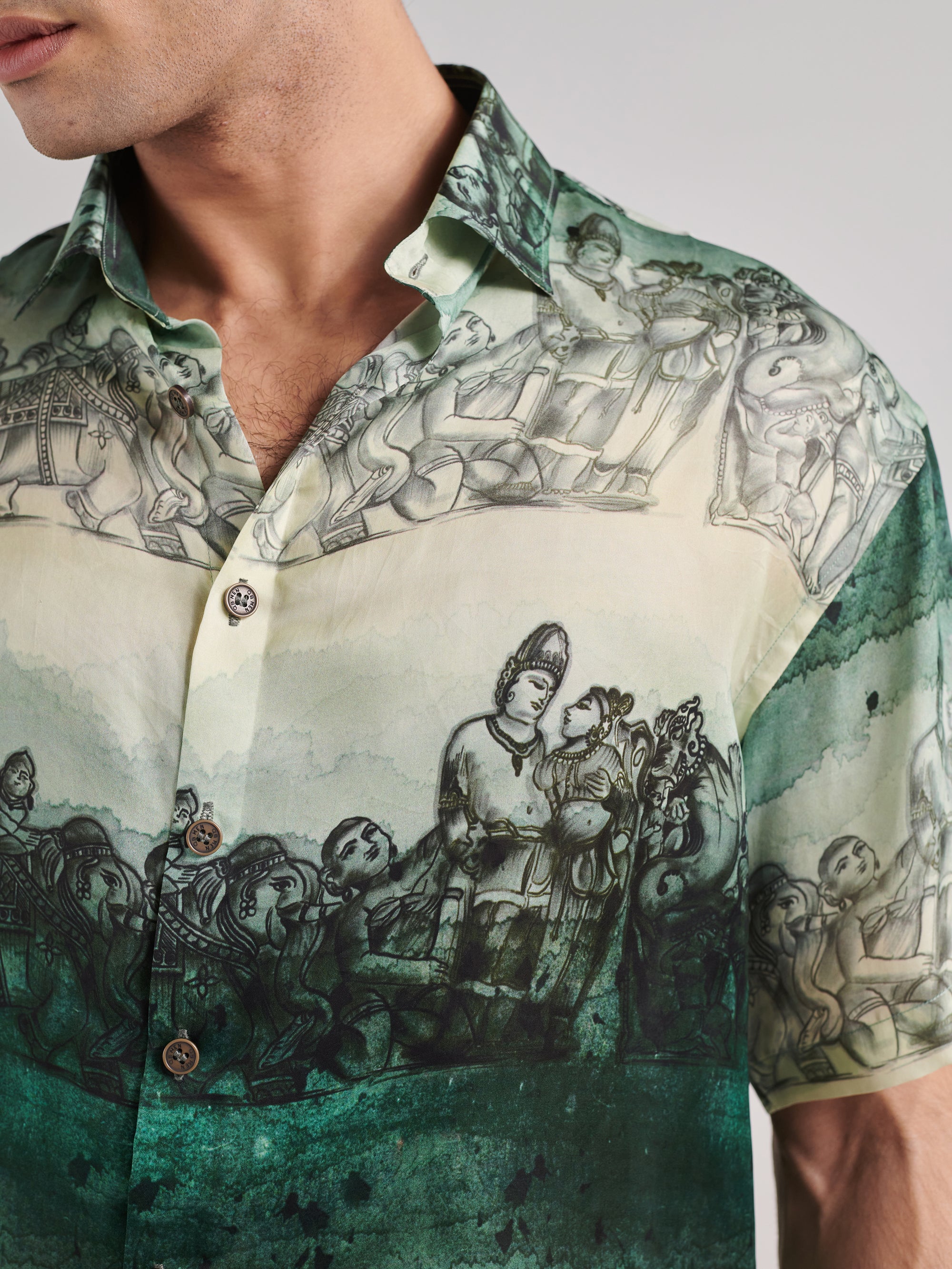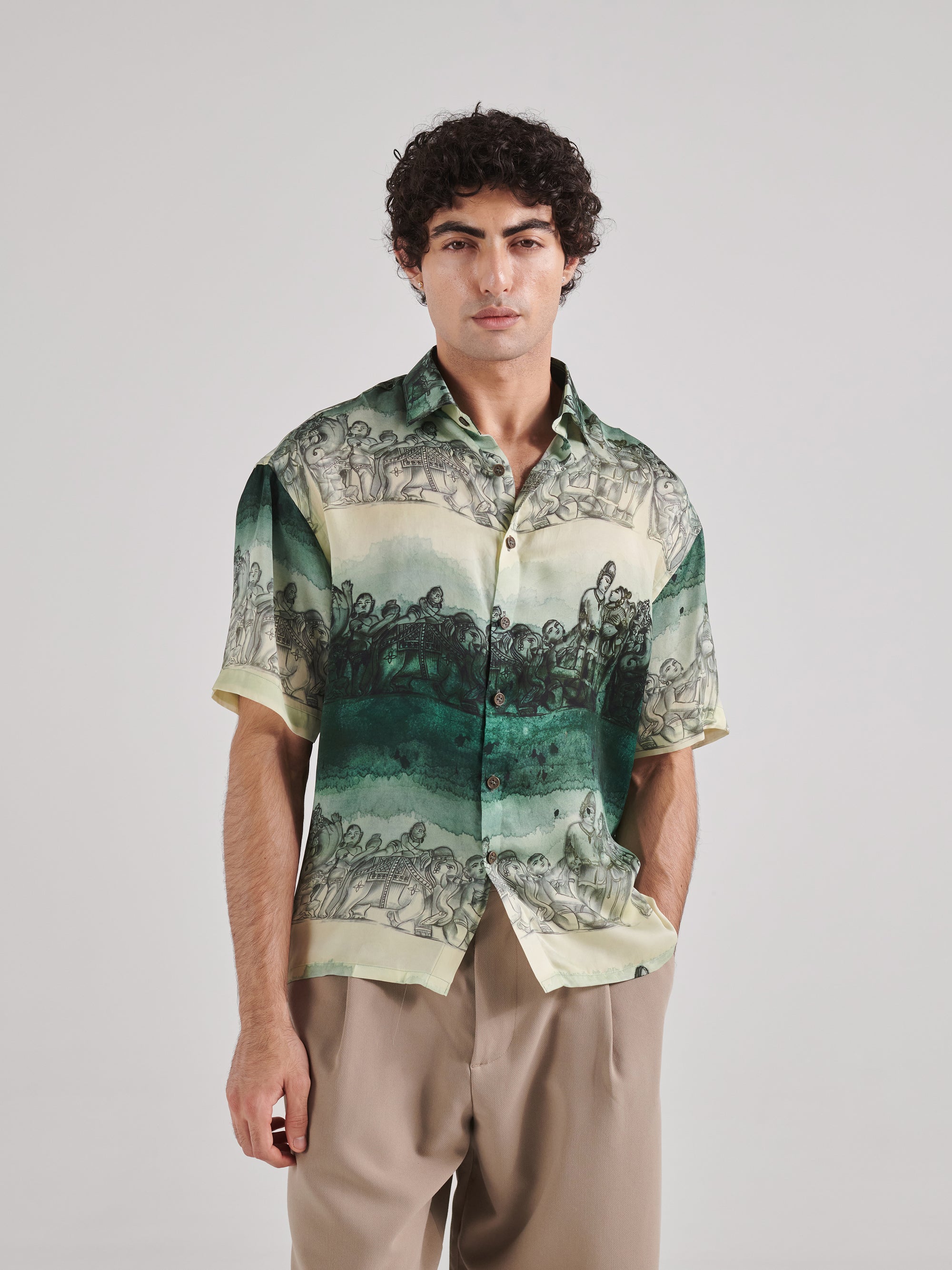 Khajuraho Green Drop Shoulder Shirt