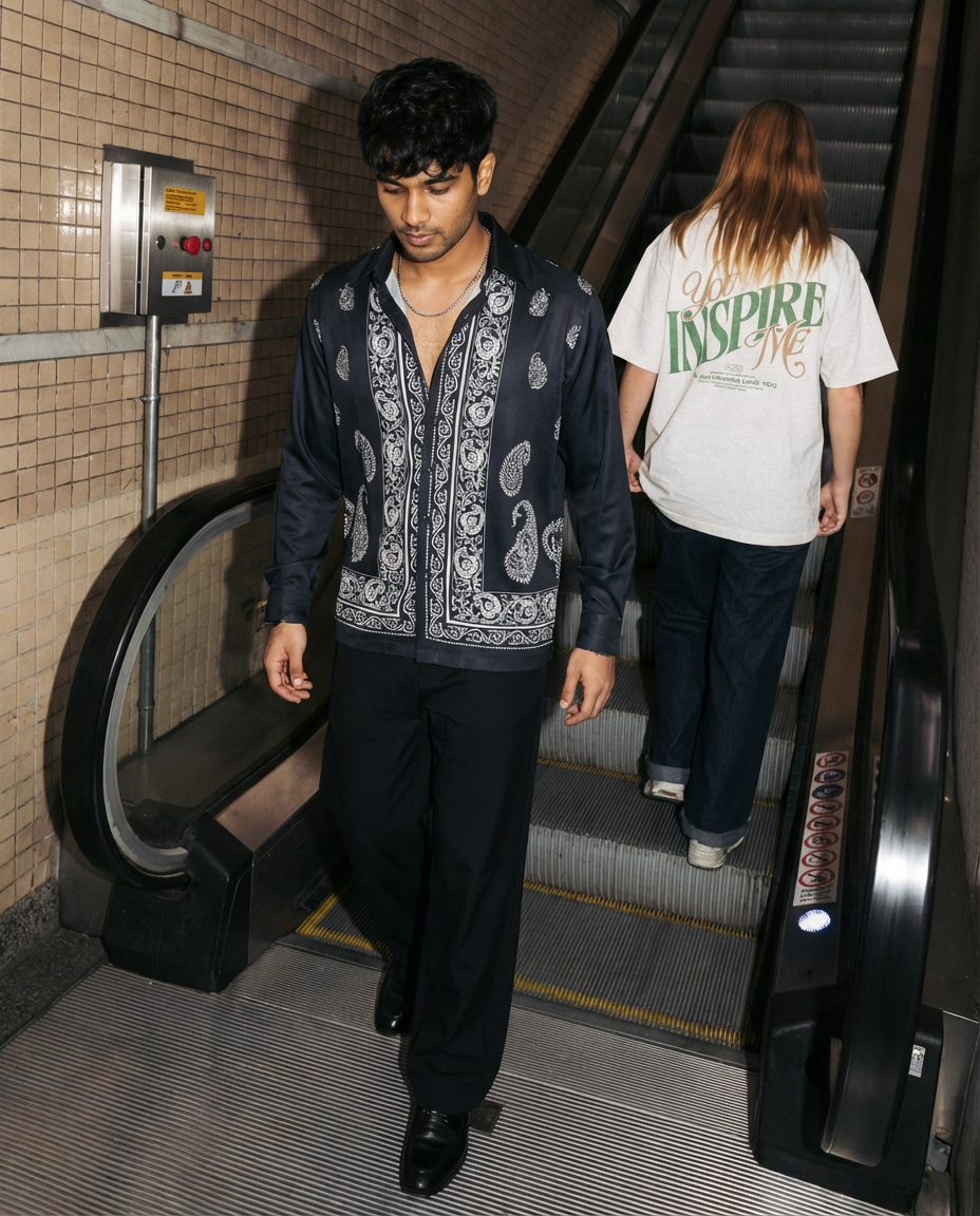 Midnight Paisley Oxford Collar Shirt