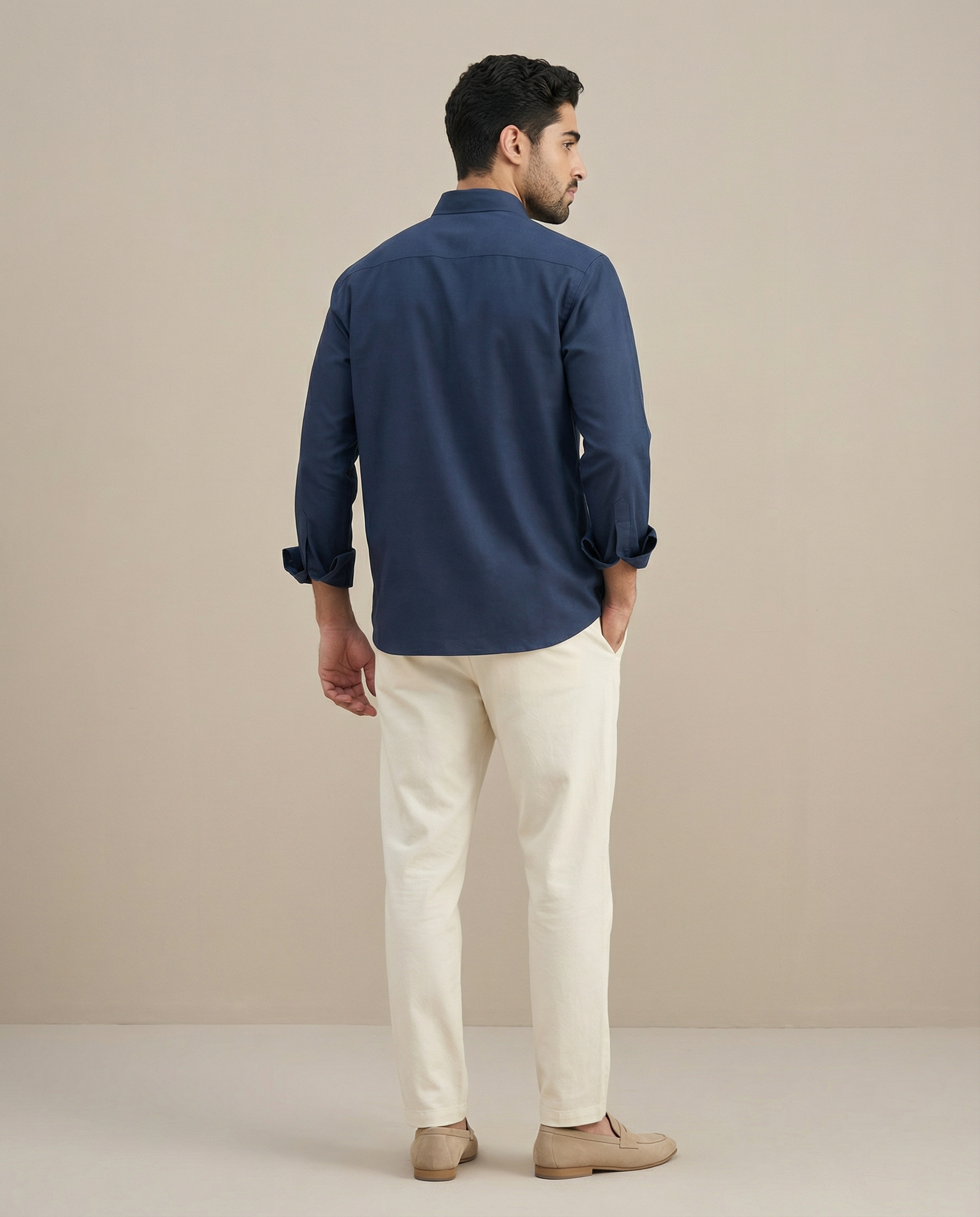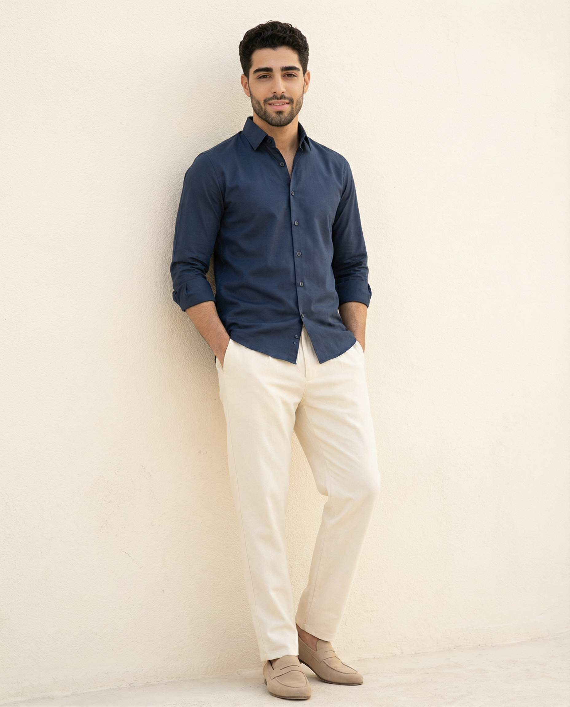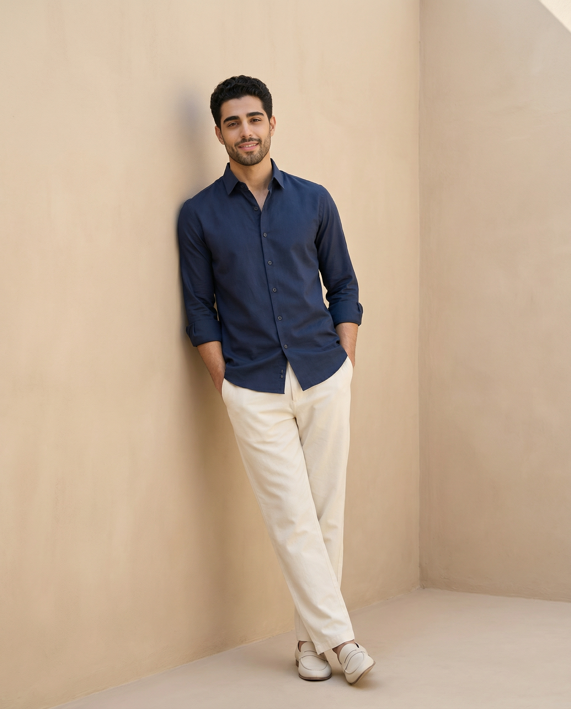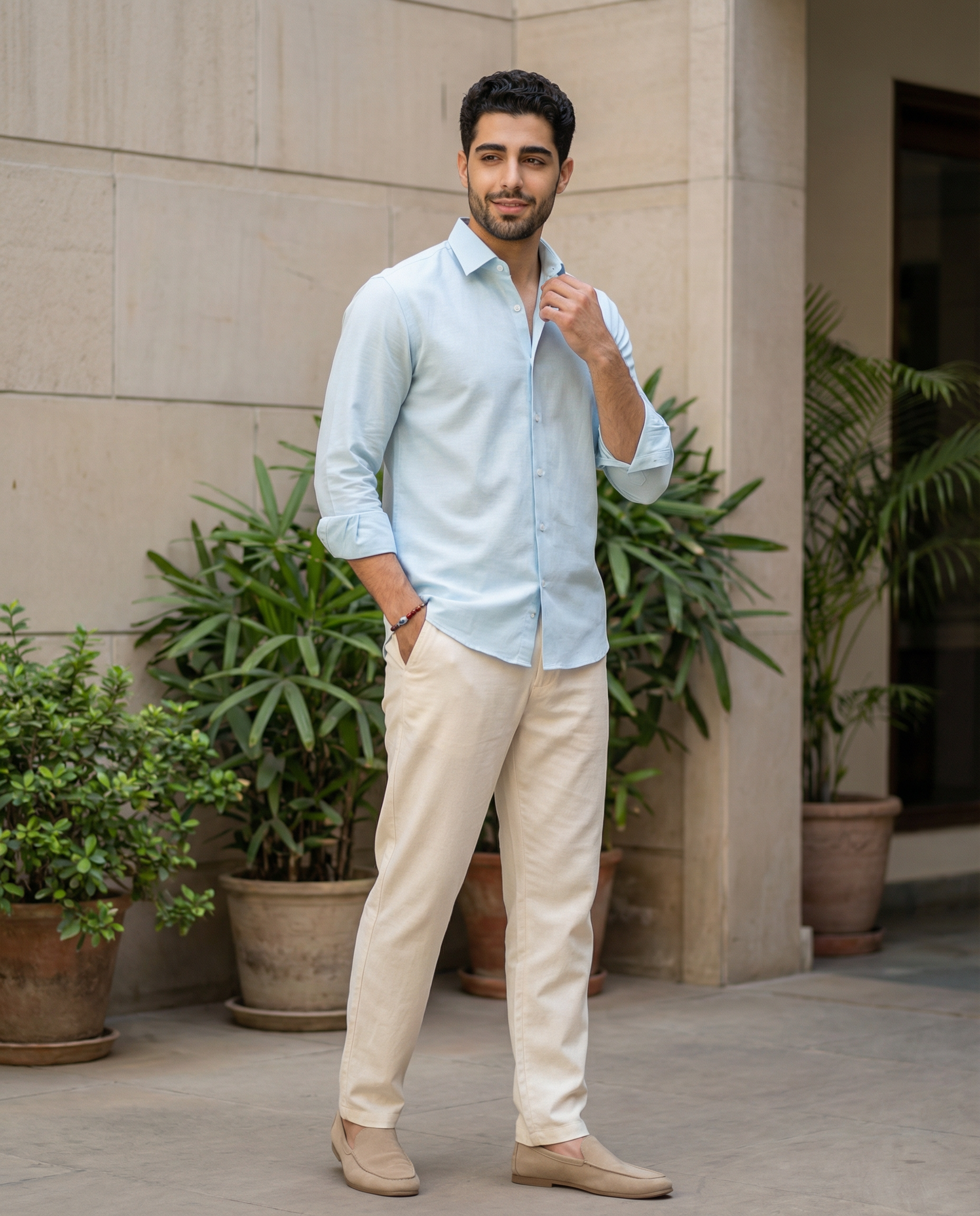 100% cambric cotton button-up featuring intricate cream-colored botanical prints on a vibrant turquoise background. The lightweight, breathable fabric offers exceptional summer comfort while the detailed floral pattern with stylized lilies creates an elegant yet relaxed tropical aesthetic.