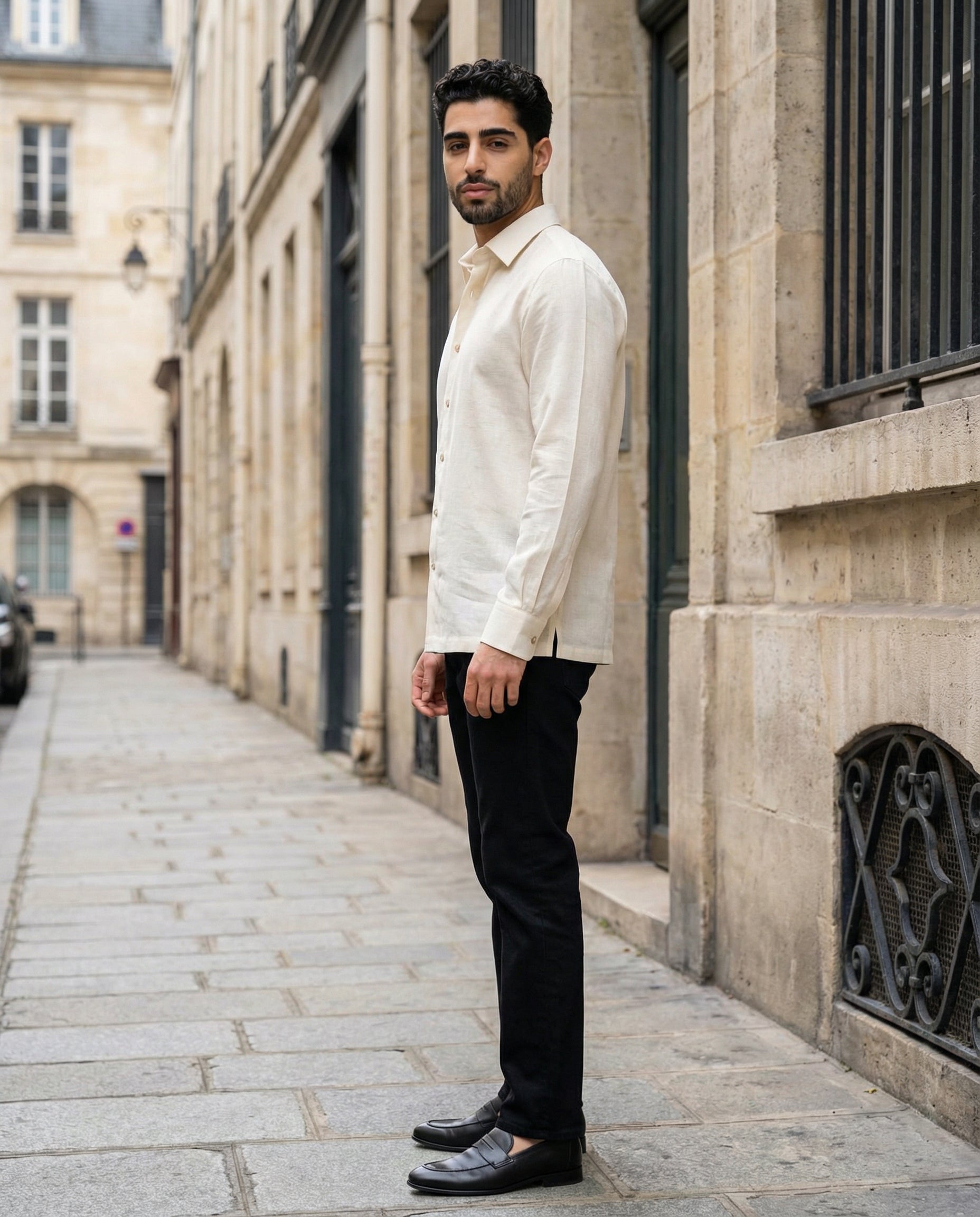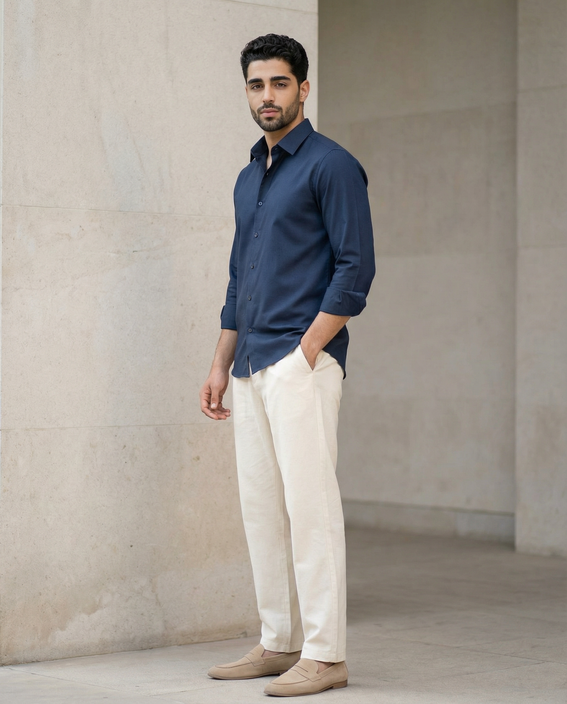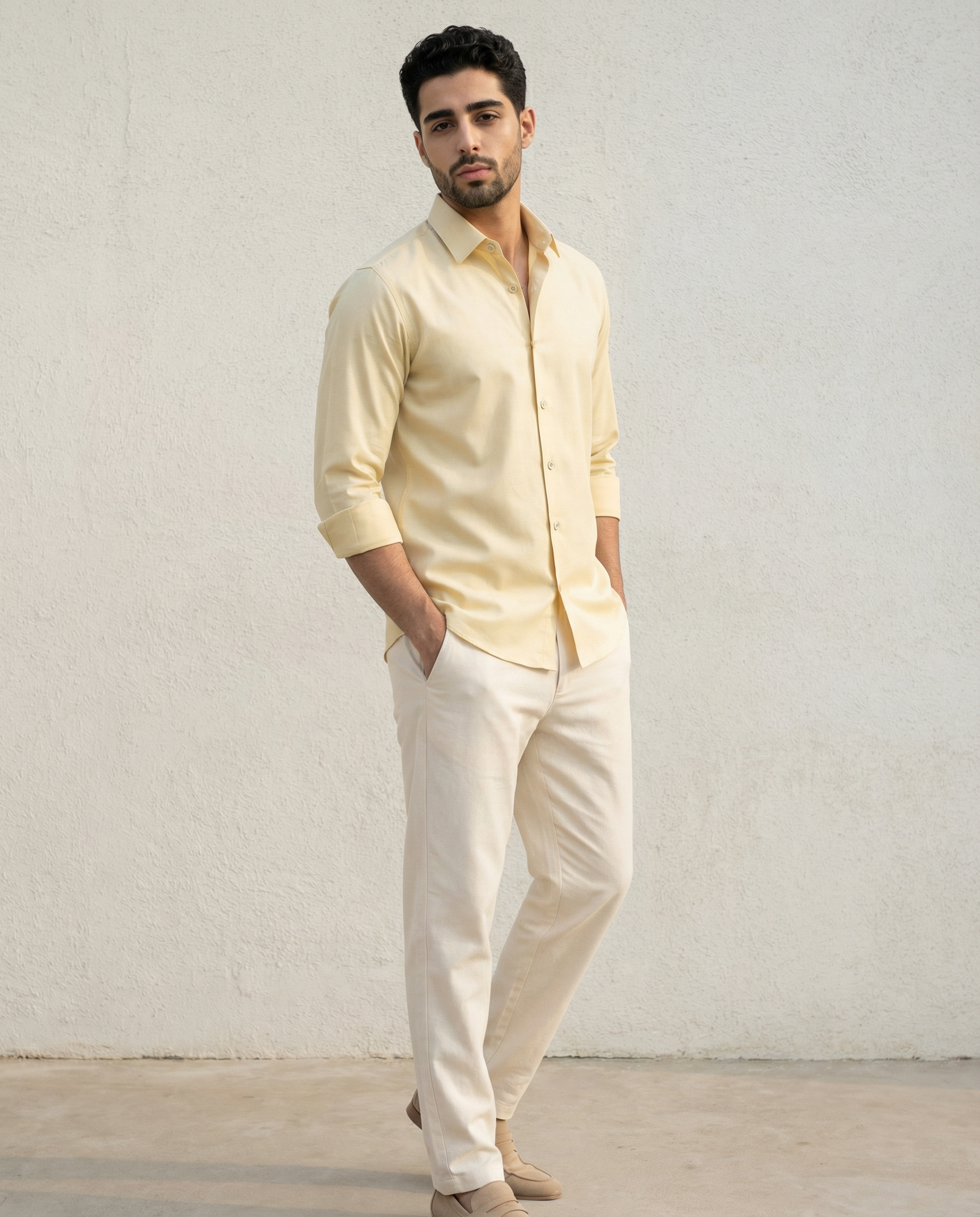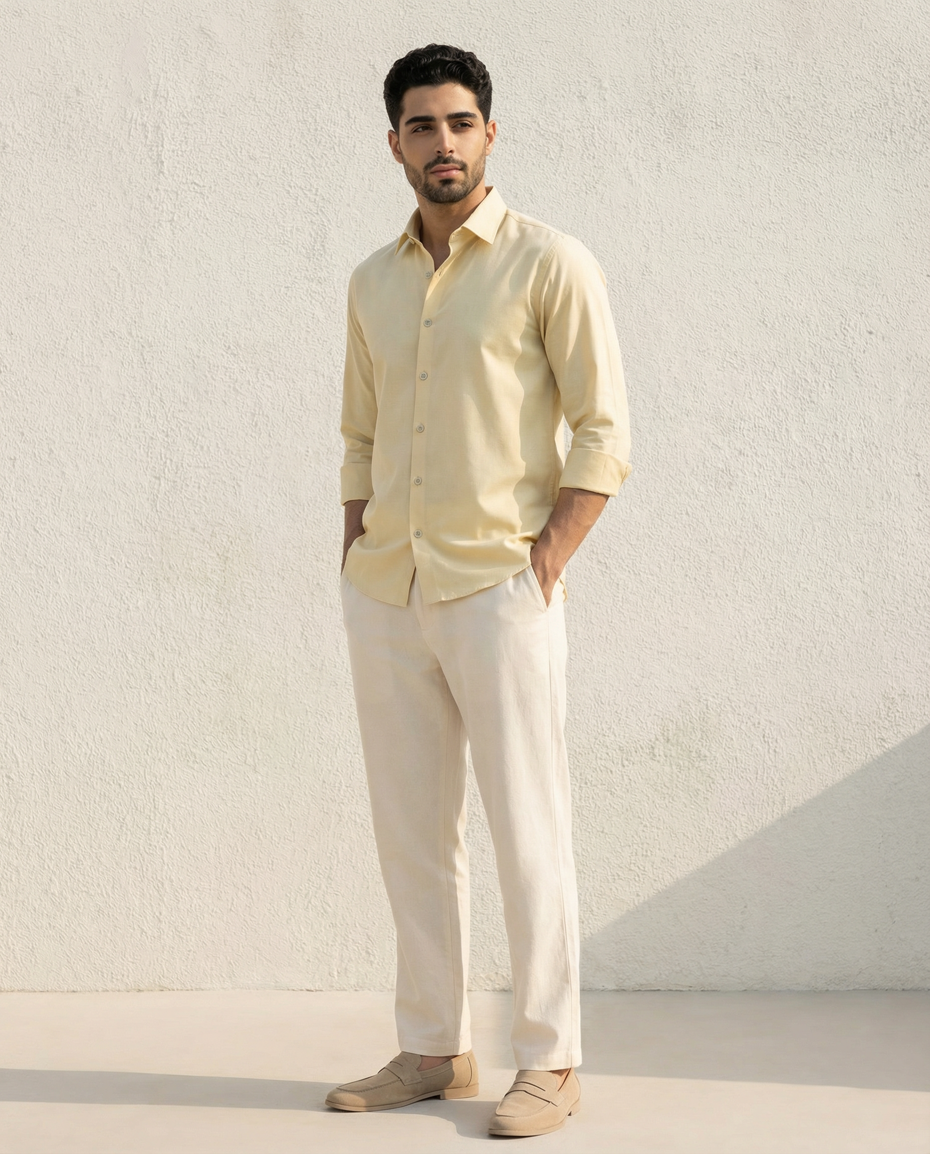 100% cambric cotton button-up featuring intricate cream-colored botanical prints on a vibrant turquoise background. The lightweight, breathable fabric offers exceptional summer comfort while the detailed floral pattern with stylized lilies creates an elegant yet relaxed tropical aesthetic.