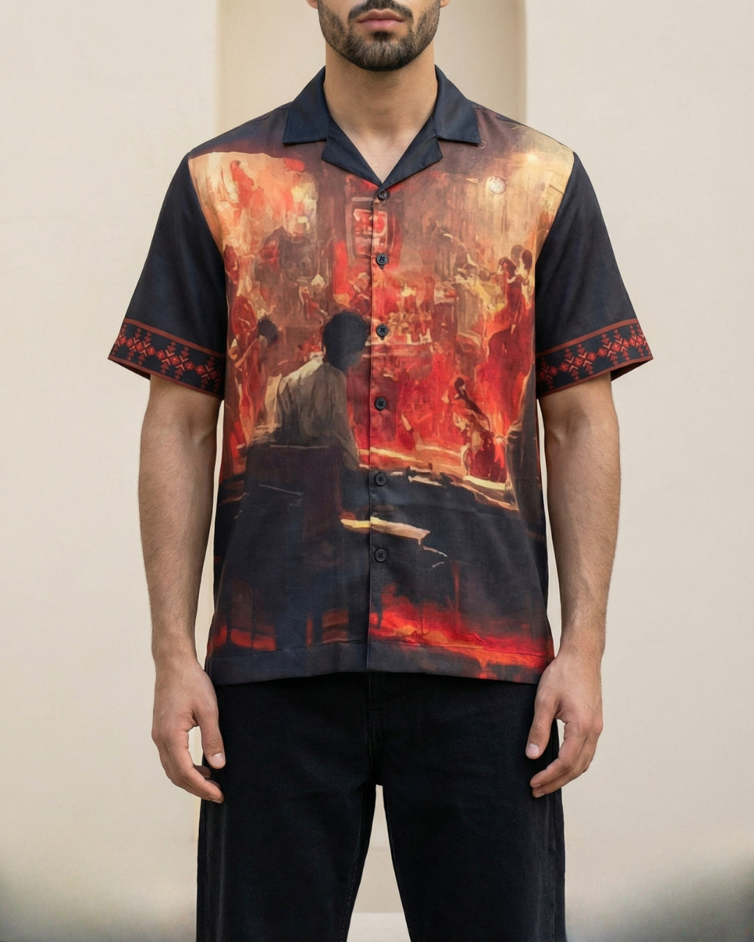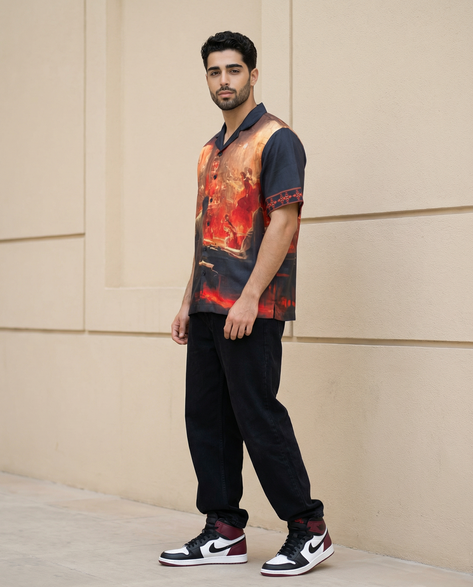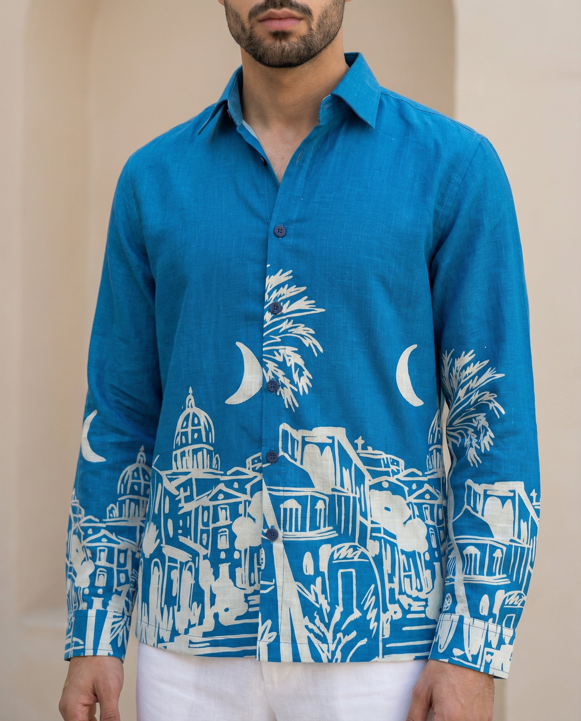 Azure Botanica Oversize Hawaiian Collar Shirt