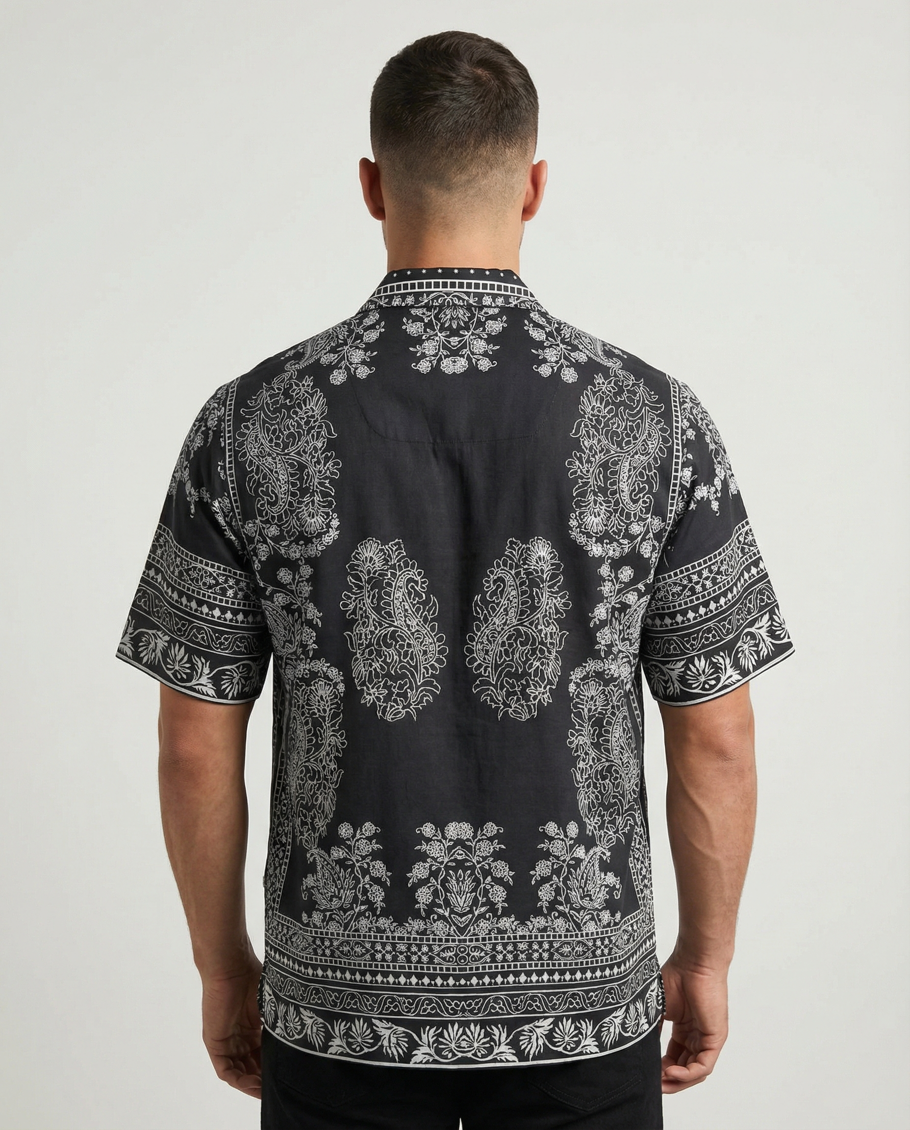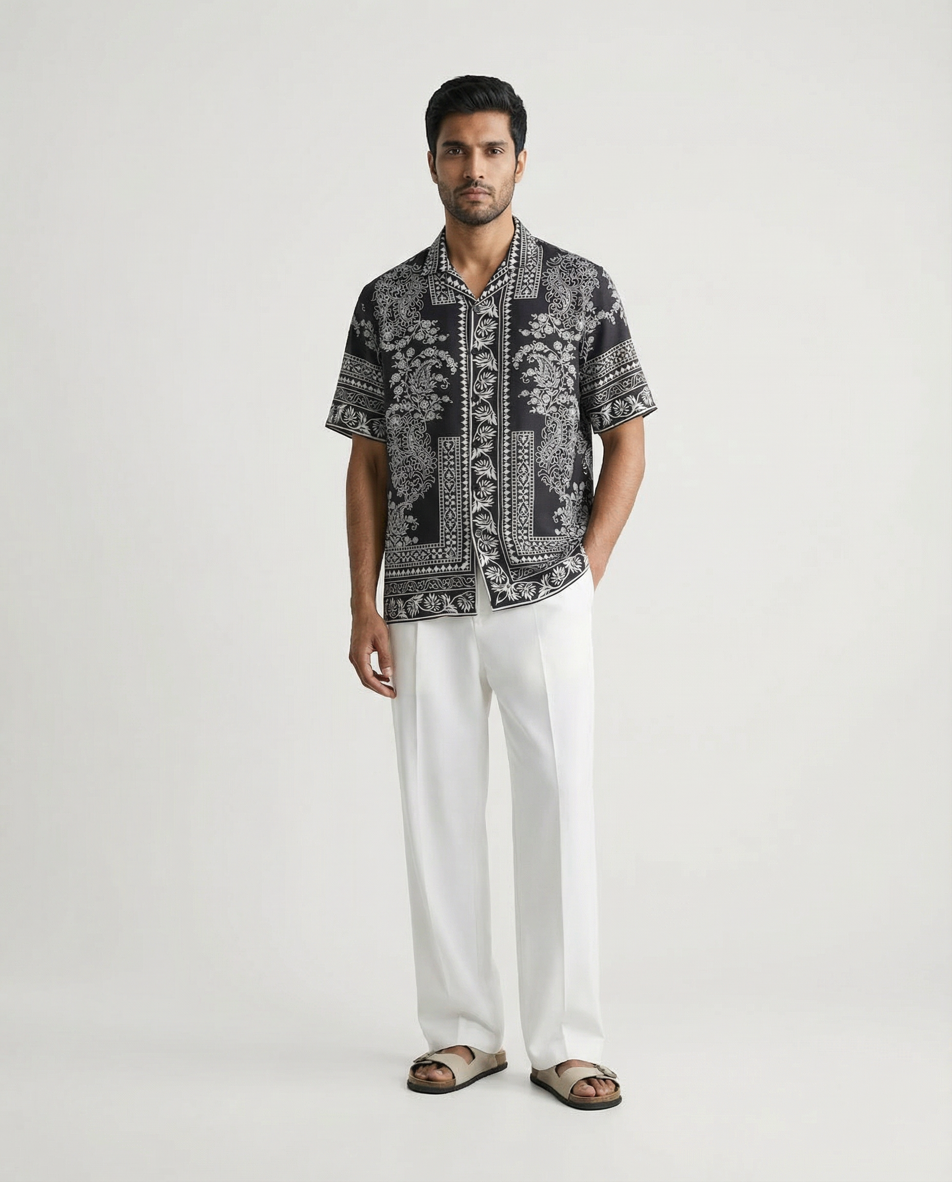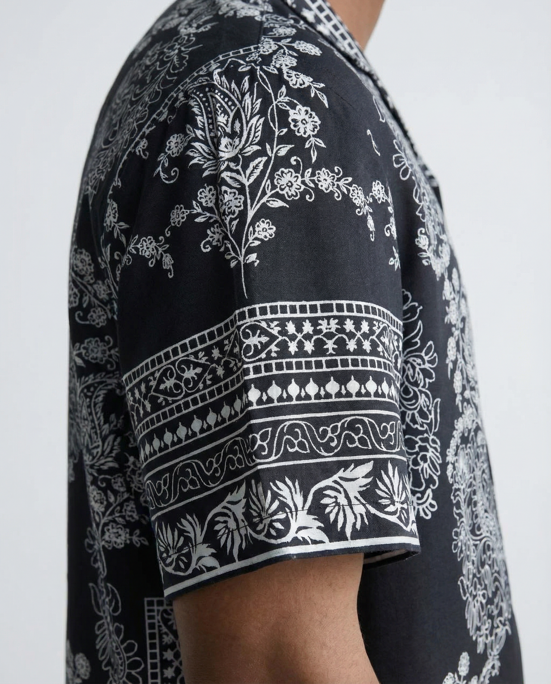 Step out in style with this Cuban collar shirt, tailored from ultra-soft, breathable tencel fabric. Featuring relaxed tailoring and an artistic abstract print in deep reds, blues, and muted tones, it offers a fluid drape and contemporary flair—perfect for standout summer statements.